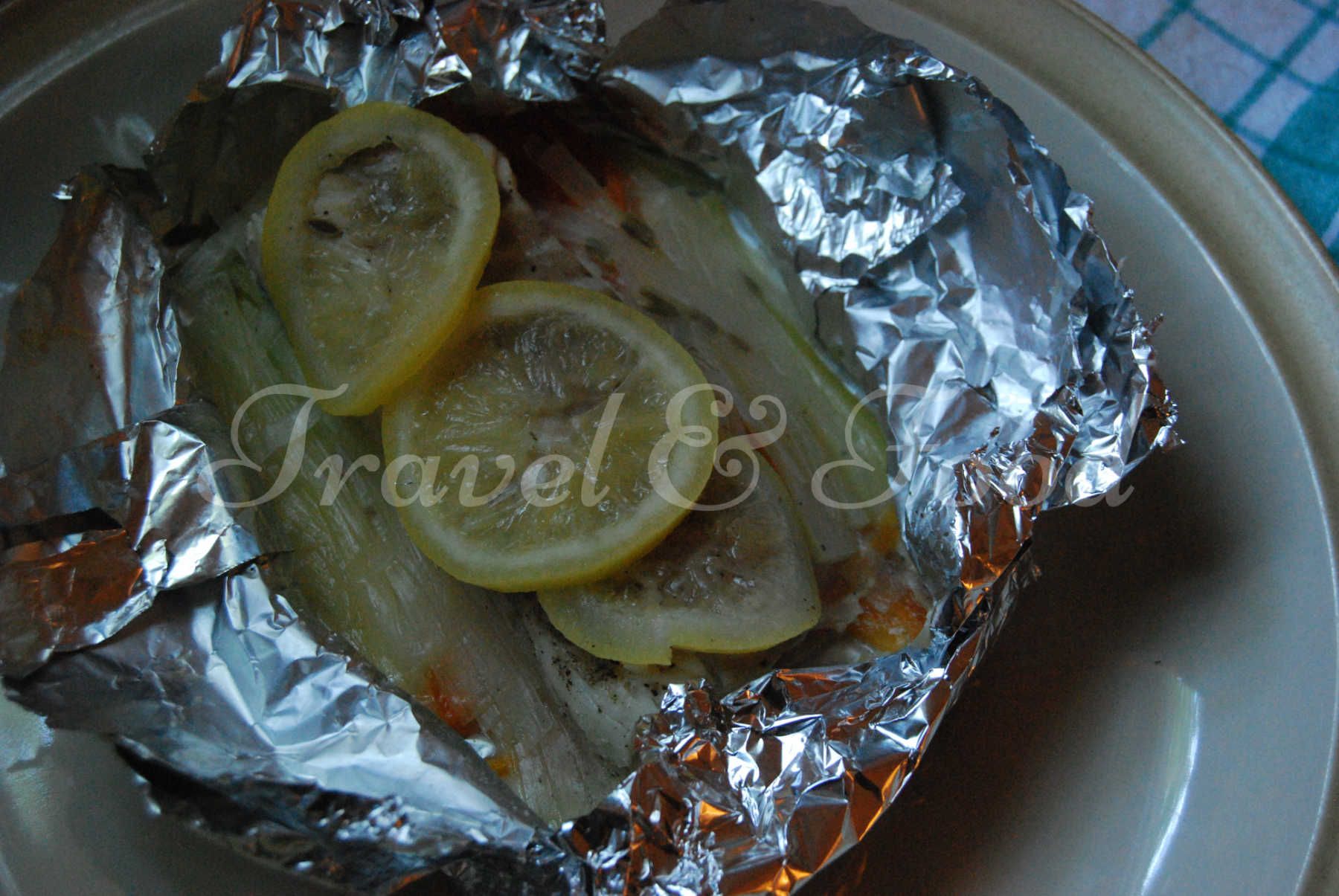 Prepare two large pieces of aluminium foil. Put in the center of each papillote the leeks and carrots. Top it with the fish and season to taste. Place a few slices of lemon on top of the fish. Sprinkle with fennel seeds. Moist with a little bit of lemon juice.