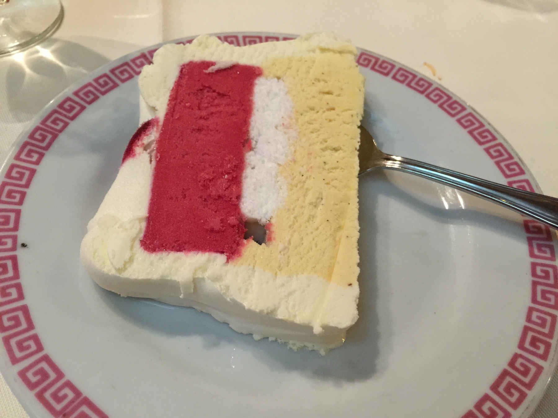 What I don’t really like with menus is that they often offer not-so-good dessert. As I was completely full, I took the ice cream and my husband did too. It was a raspberries ice-cream with meringues in it, very good to end the dinner.