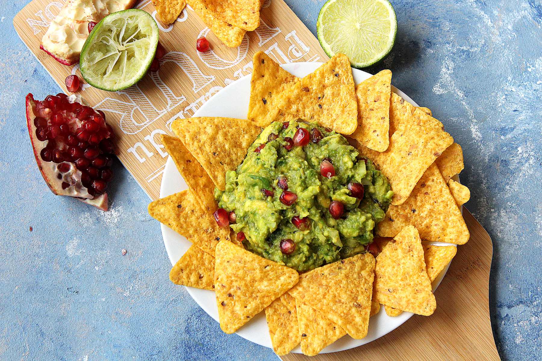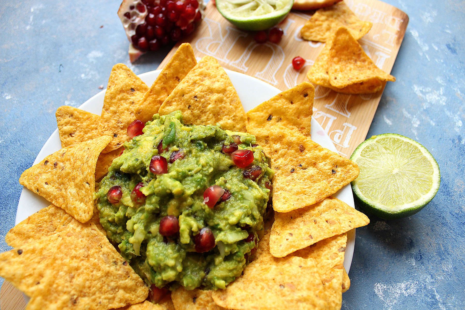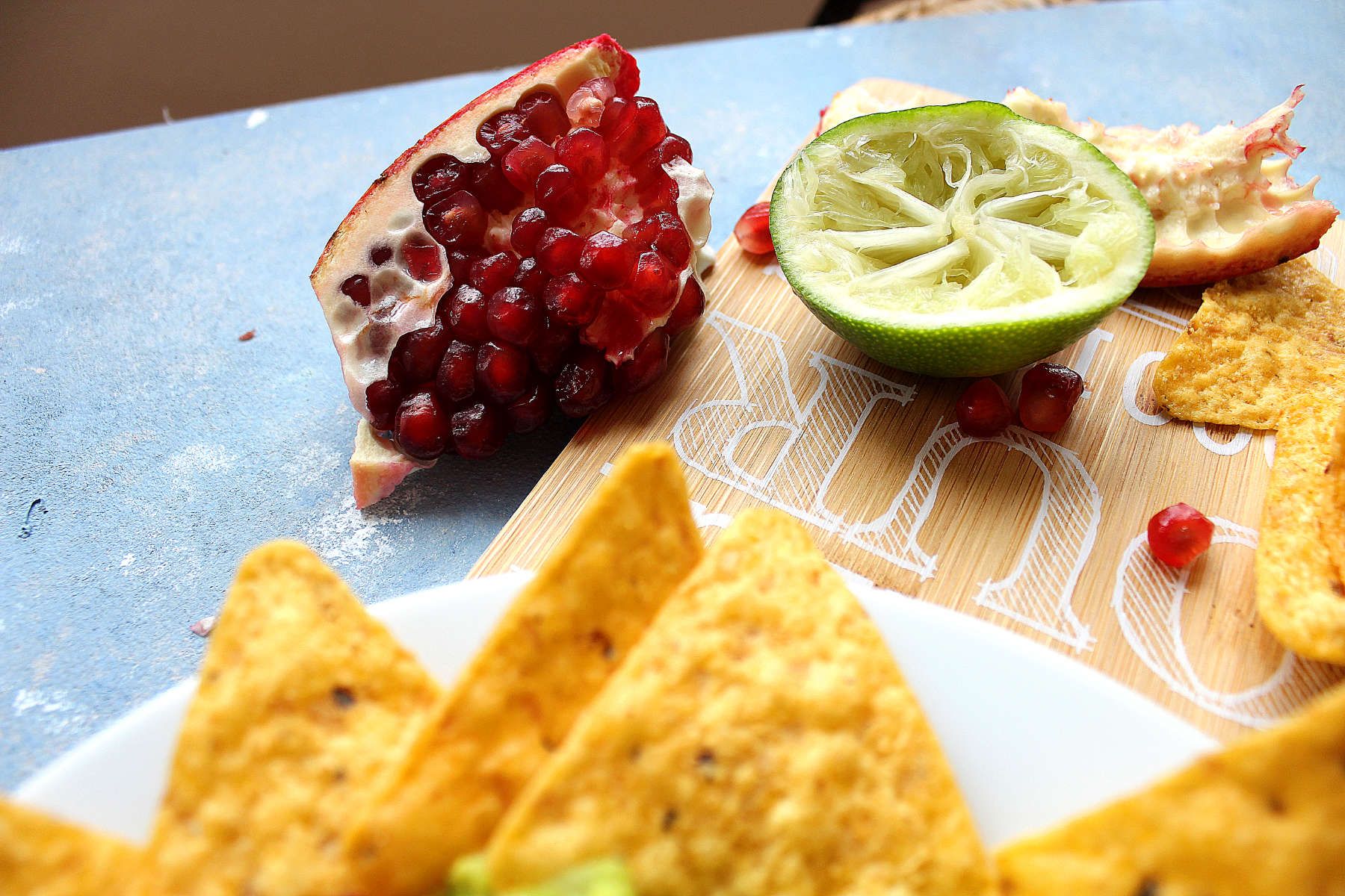Tomatoes during Winter is a big no-no to me. No flavor, no good textures… Ew. So I replaced the tomatoes with pomegranate seeds. It is deliciously sweet and tangy, I really enjoy it. And it goes really well with guacamole if you ask me. However, I did not have any fresh chili on hand so I skipped that but if you like it, put it all in! Fresh chili or jalapeños sounds pretty good.