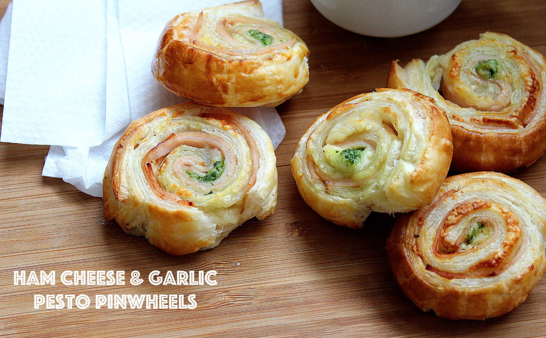 Ham cheese and garlic pesto pinwheels (9 pinwheels) :