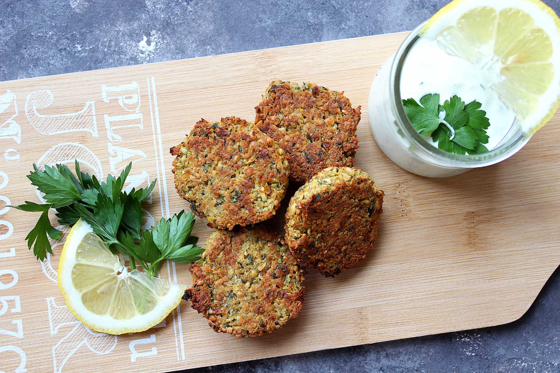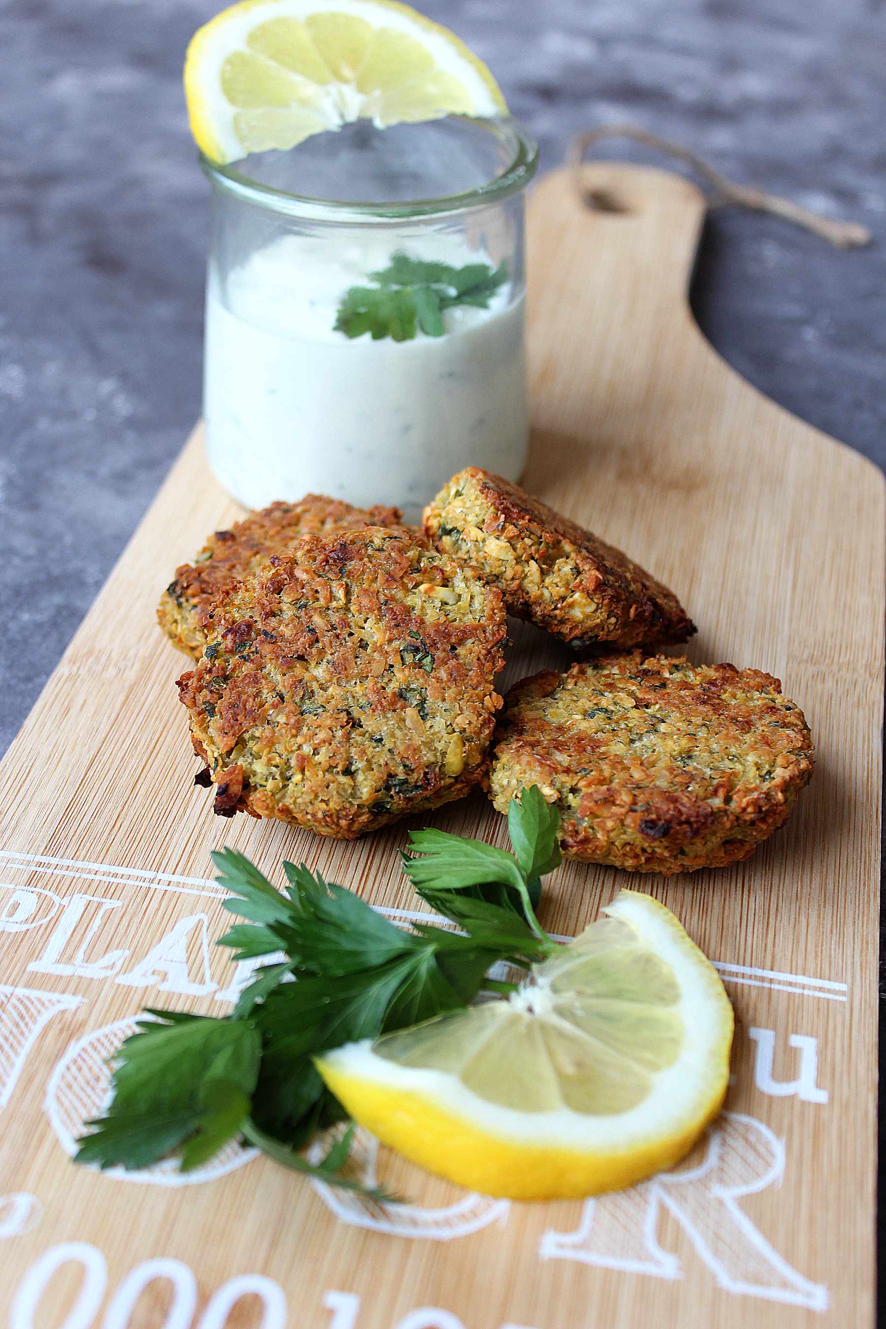 I served these pretties with a greek yogurt lemony sauce loaded with fresh parsley. It enhances the flavors of the falafels and really makes it fresher. Stuff that all into a pita bread and you got dinner on the table. You really don’t need a recipe for that just add a little salt in the yogurt, lemon juice to taste and a lot of parsley!