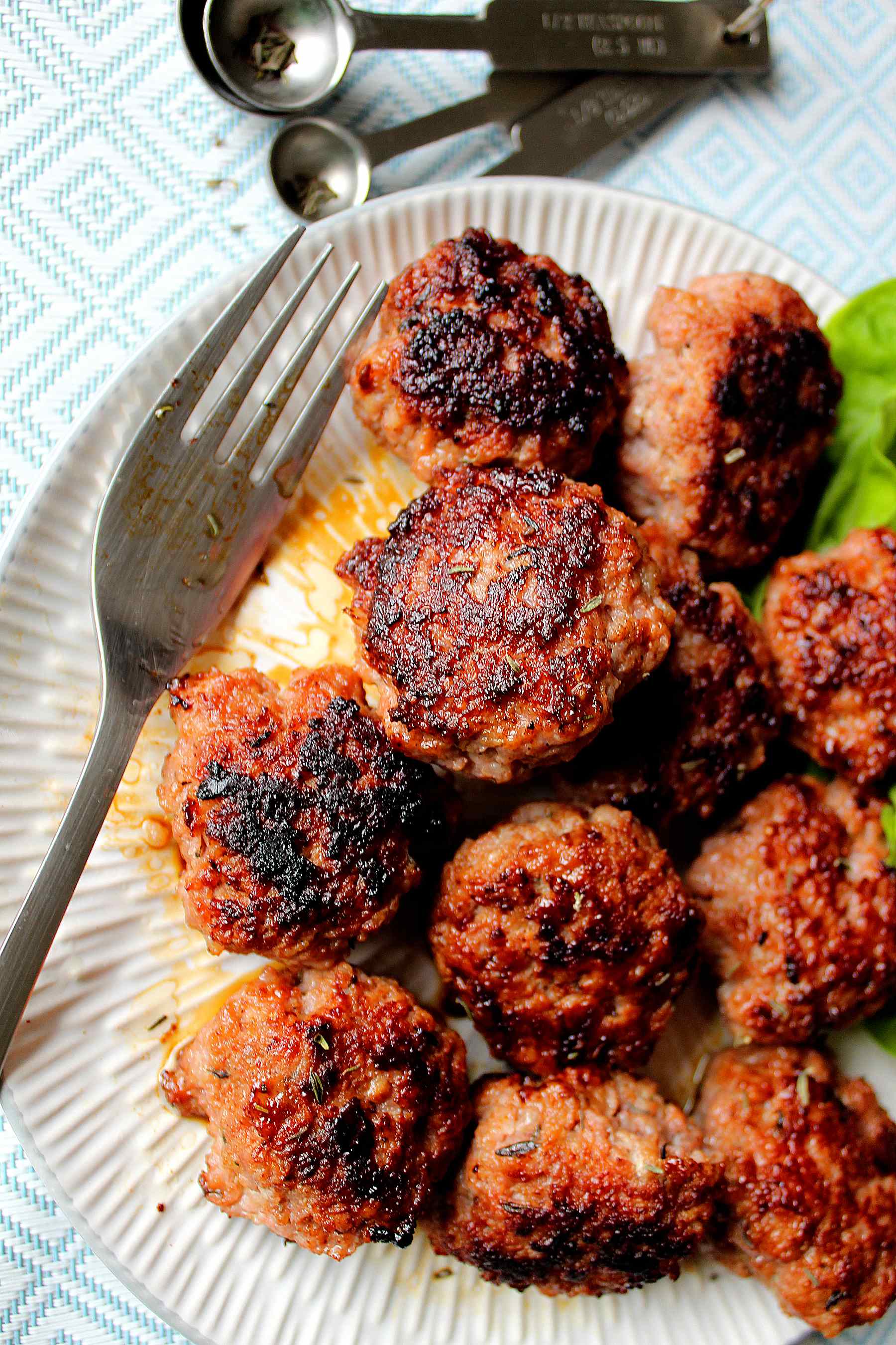 I don’t really do meatballs very often but these ones are really stealing the show! Maple syrup pork meatballs, yes, you heard that right. If you could only smell the delicious scents of my kitchen right now…