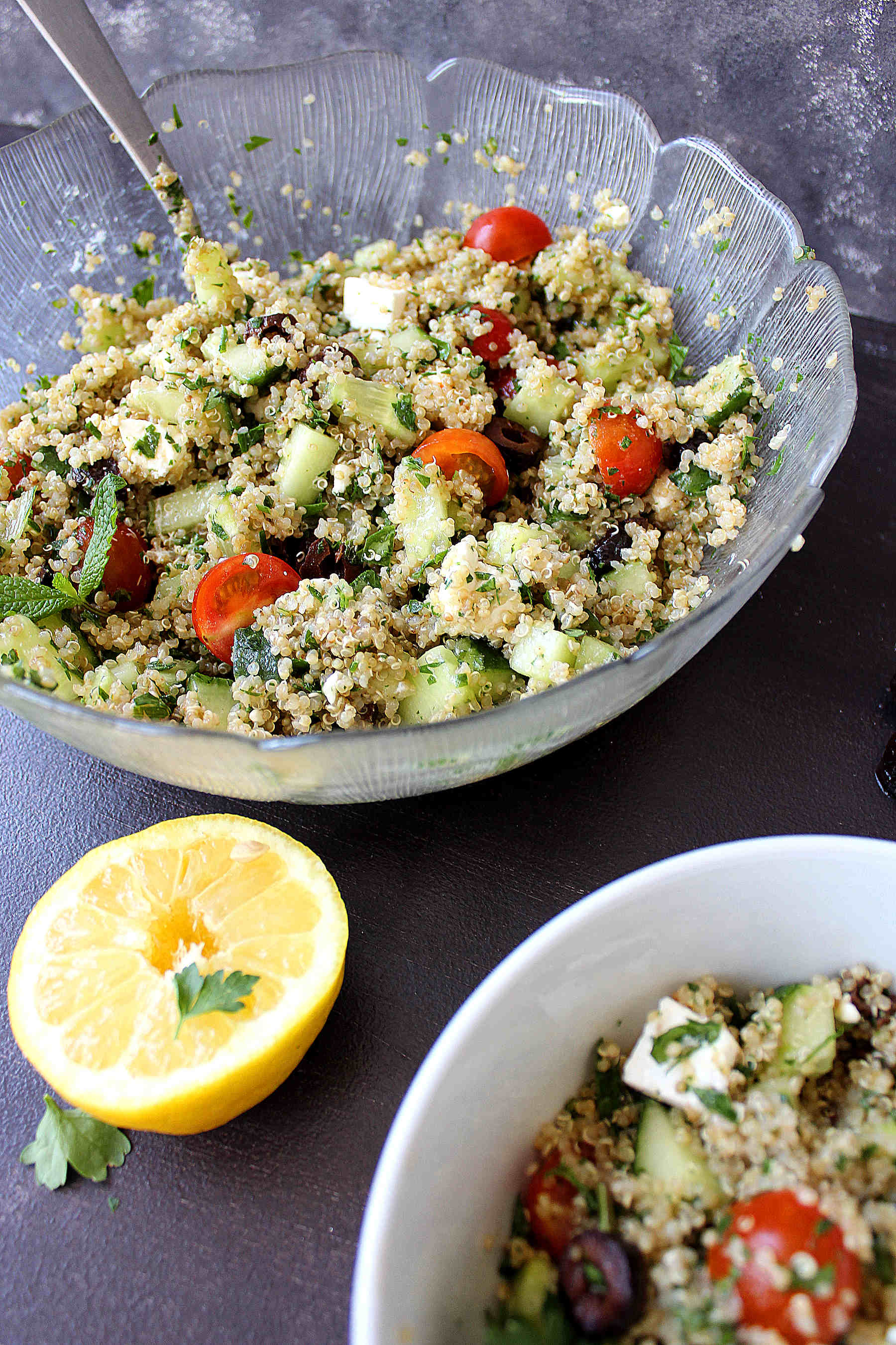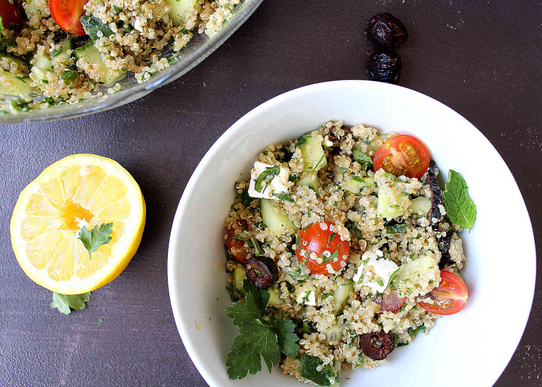 A fresh summer salad, that is everything I need at the moment and it is very simple too because if we can, why not? Cooking the quinoa is the longest task, so you can say it’s pretty quick to make. Throw everything in a bowl, season, refrigerate and serve when you want.