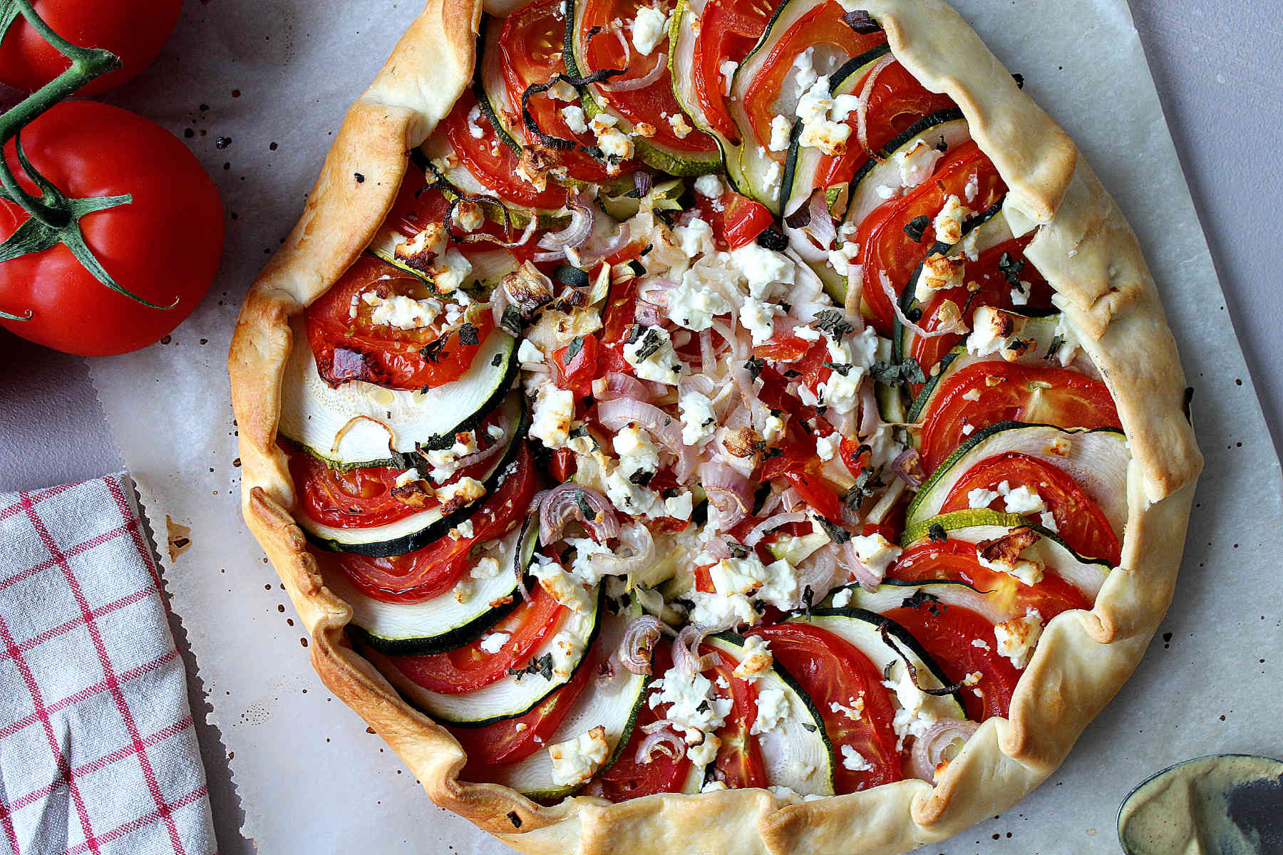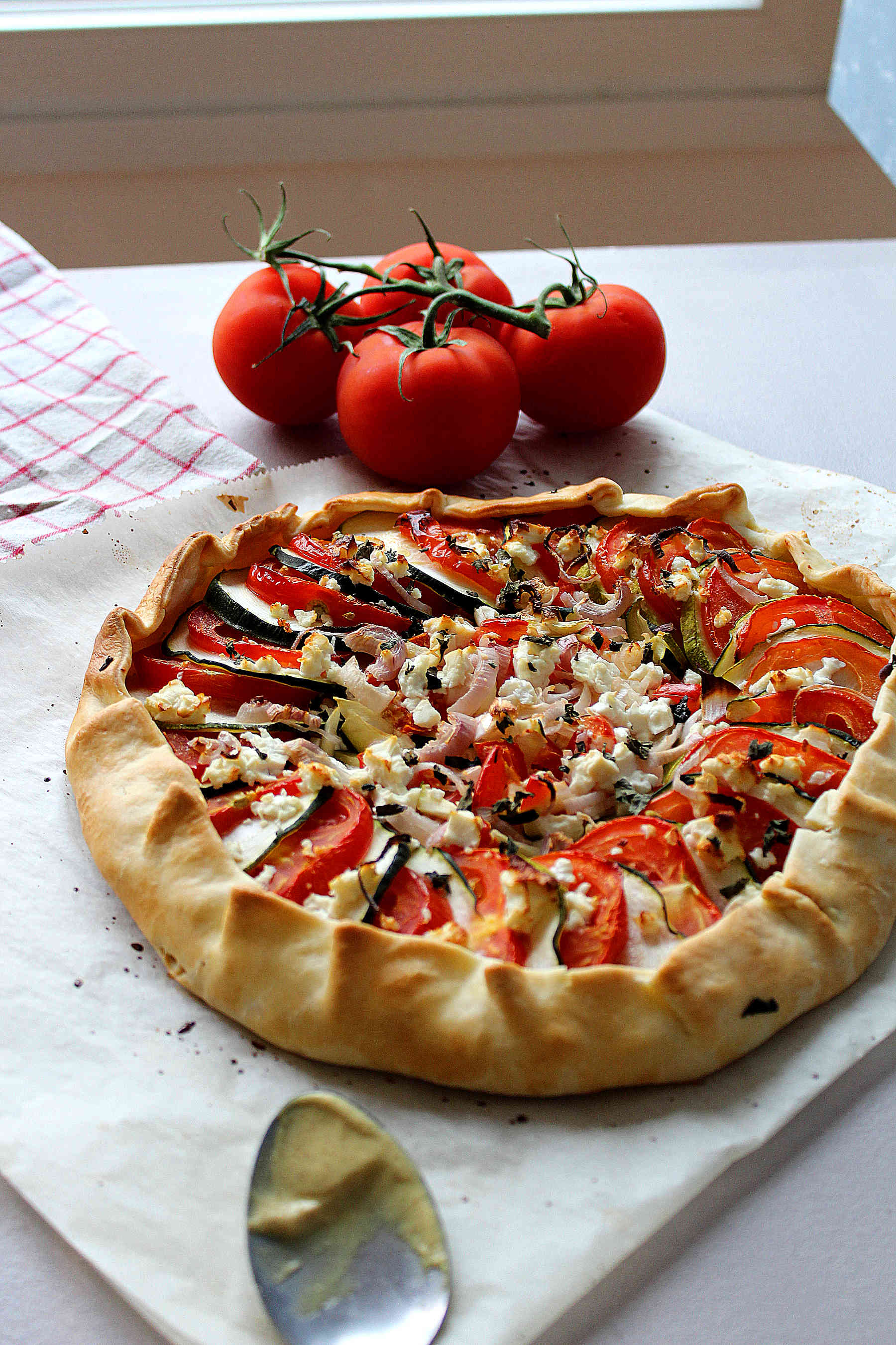 The summer galette by excellence for sure. Beautiful zucchini, tasty tomatoes and feta cheese = happiness. With a little mustard and basil, so easy, quick and really good you guys.
