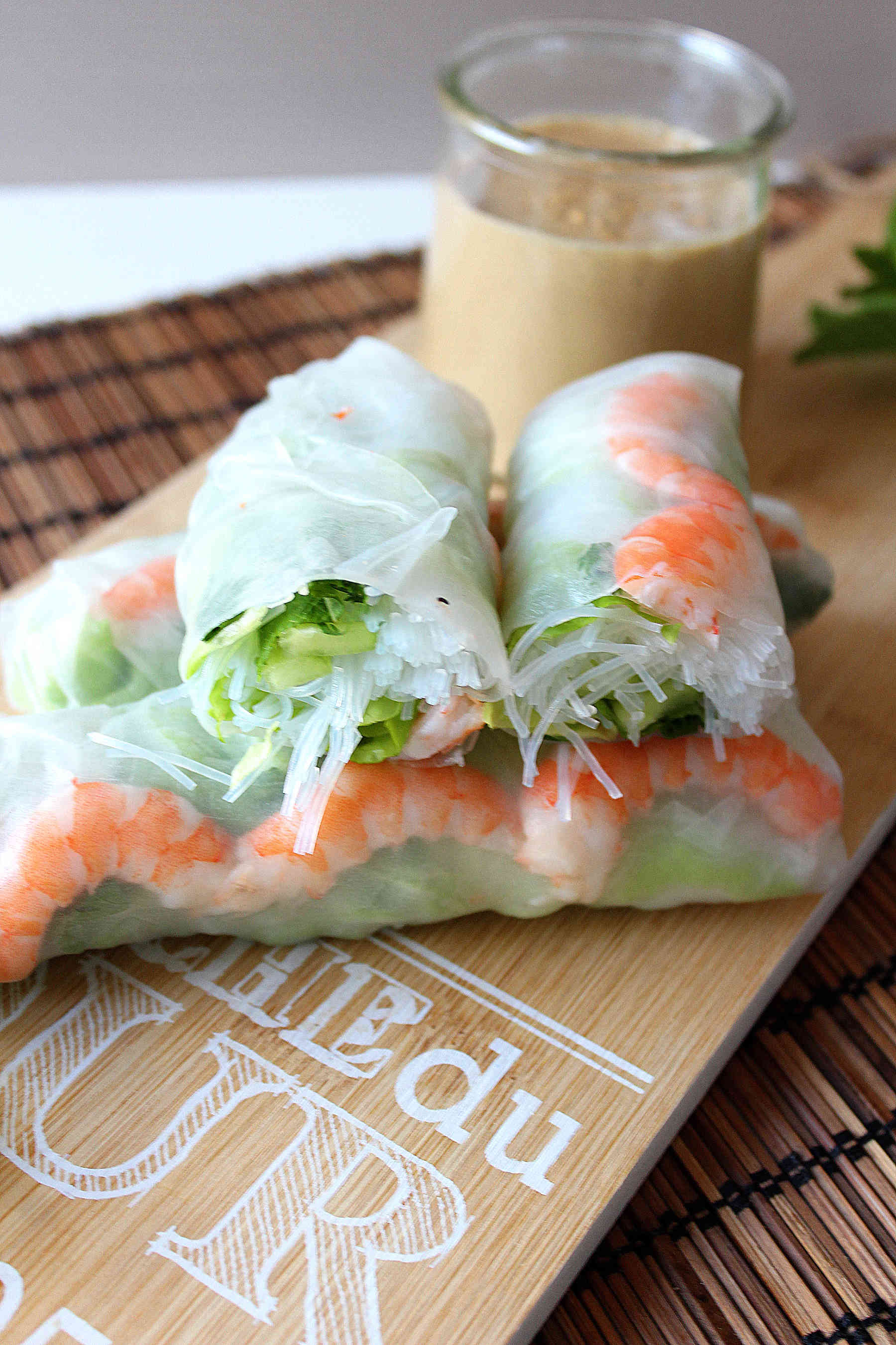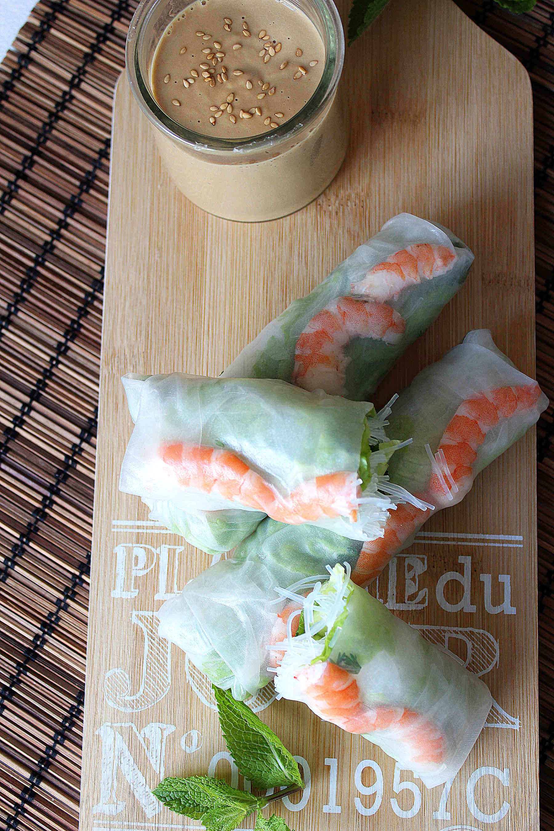 Spring rolls with peanut butter dipping sauce (10 rolls):
