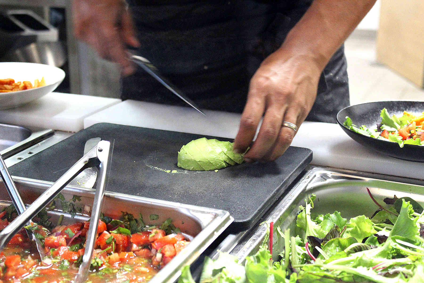 Here is my deliciously creamy avocado being cut… YUMMY.
