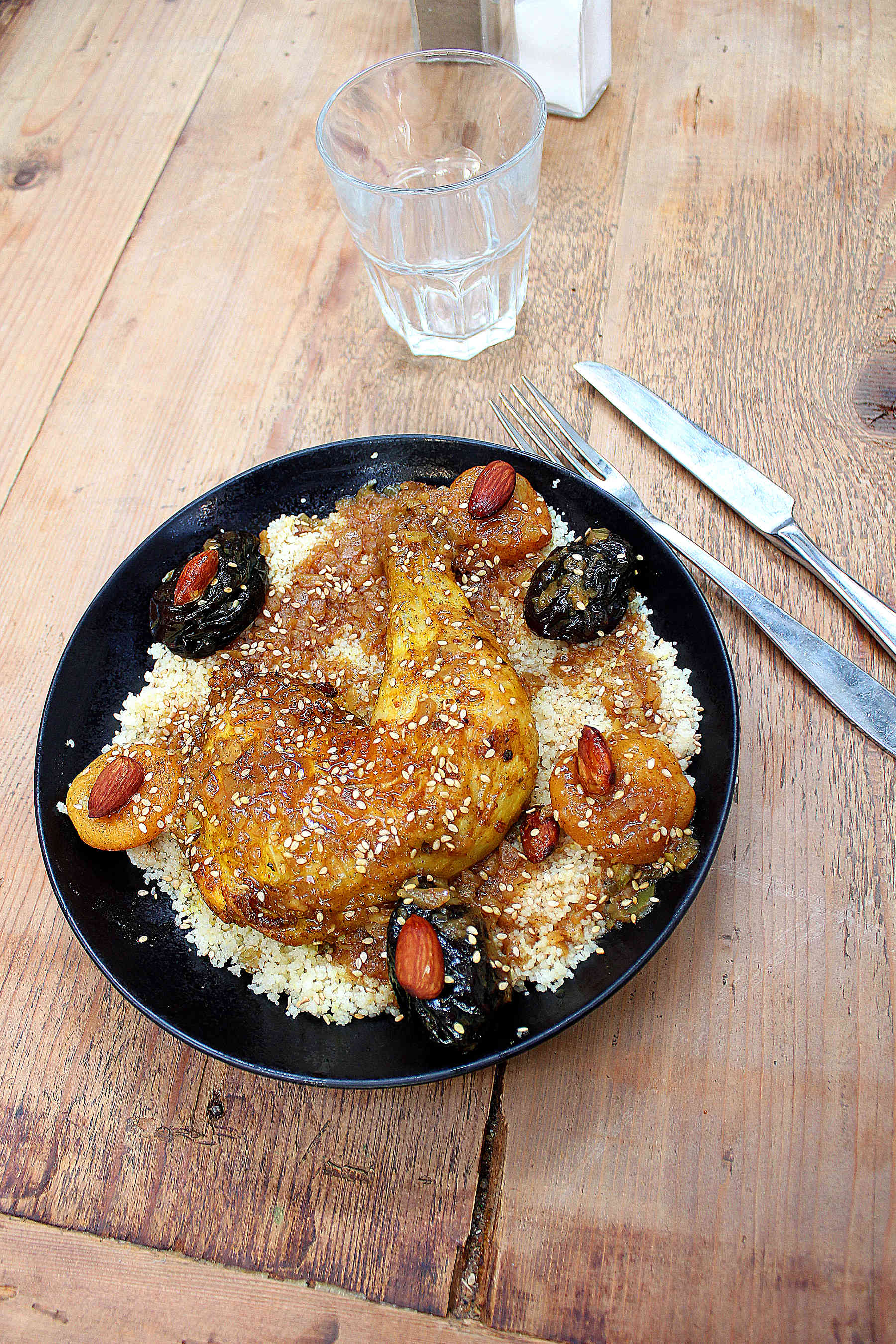 From what I understood, there is only one choice of meal but it changes regularly. This day, we had to the chance to try the chicken tajine with grilled almonds, apricots and dried prunes, served over raisins couscous. AND OH MY LORD. Explosion of flavors in my mouth, I love it. The sauce was delightful, the chicken melting in the mouth. FOR 13€. Man… You can’t do better!