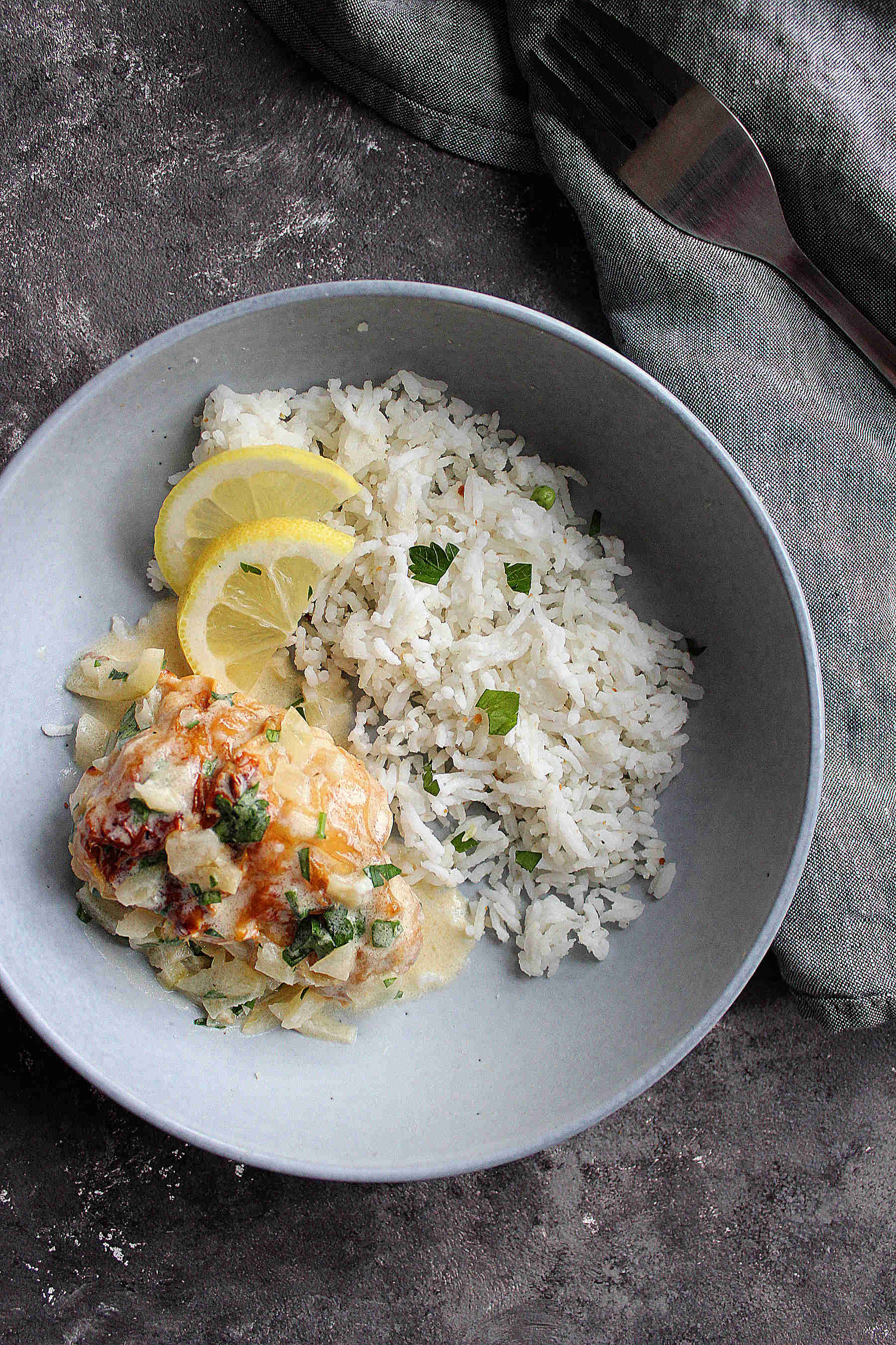 So today, I am sharing a delicious chicken recipe with a lemony + creamy sauce. Serve it with white rice + parsley and got yourself a fancy dinner in 20 minutes.