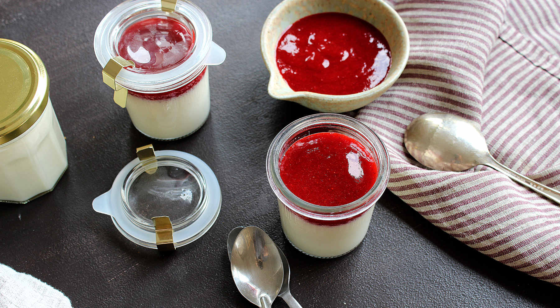 Vanilla panna cotta with strawberry coulis (4 servings) :