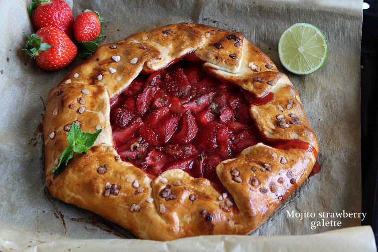 It is such a pretty galette, you’ll eat it in a pinch. Strawberries get all jammy inside and make it a moist and light dessert. For the homemade dough, please see the recipe here. I just loved it so much.