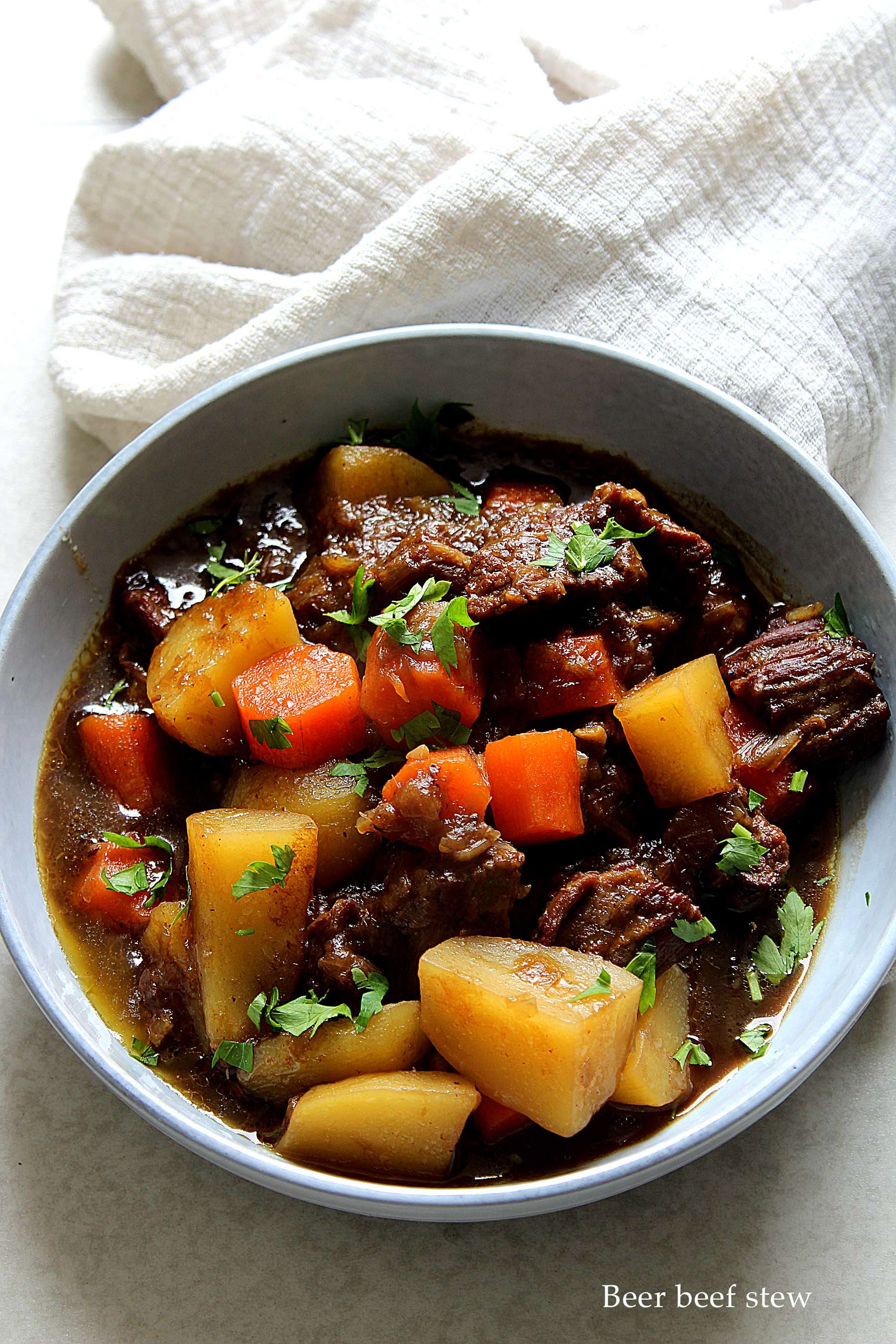 I know we're supposed to be full on summery recipes but we had a crazy moody weather last week and I took advantage of it to make yet another beef stew! This time it's beef stewed in dark beer and a few veggies, always so so good.