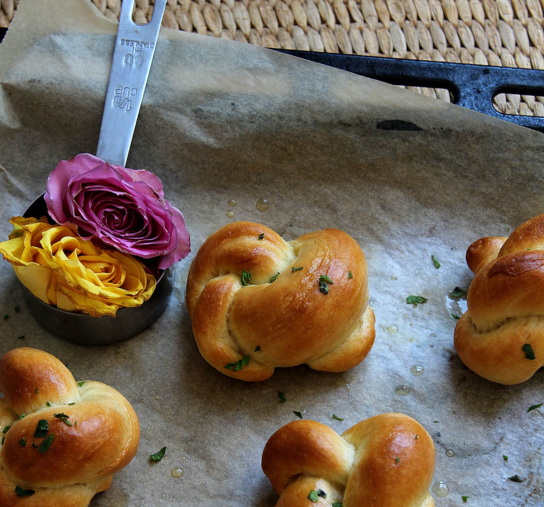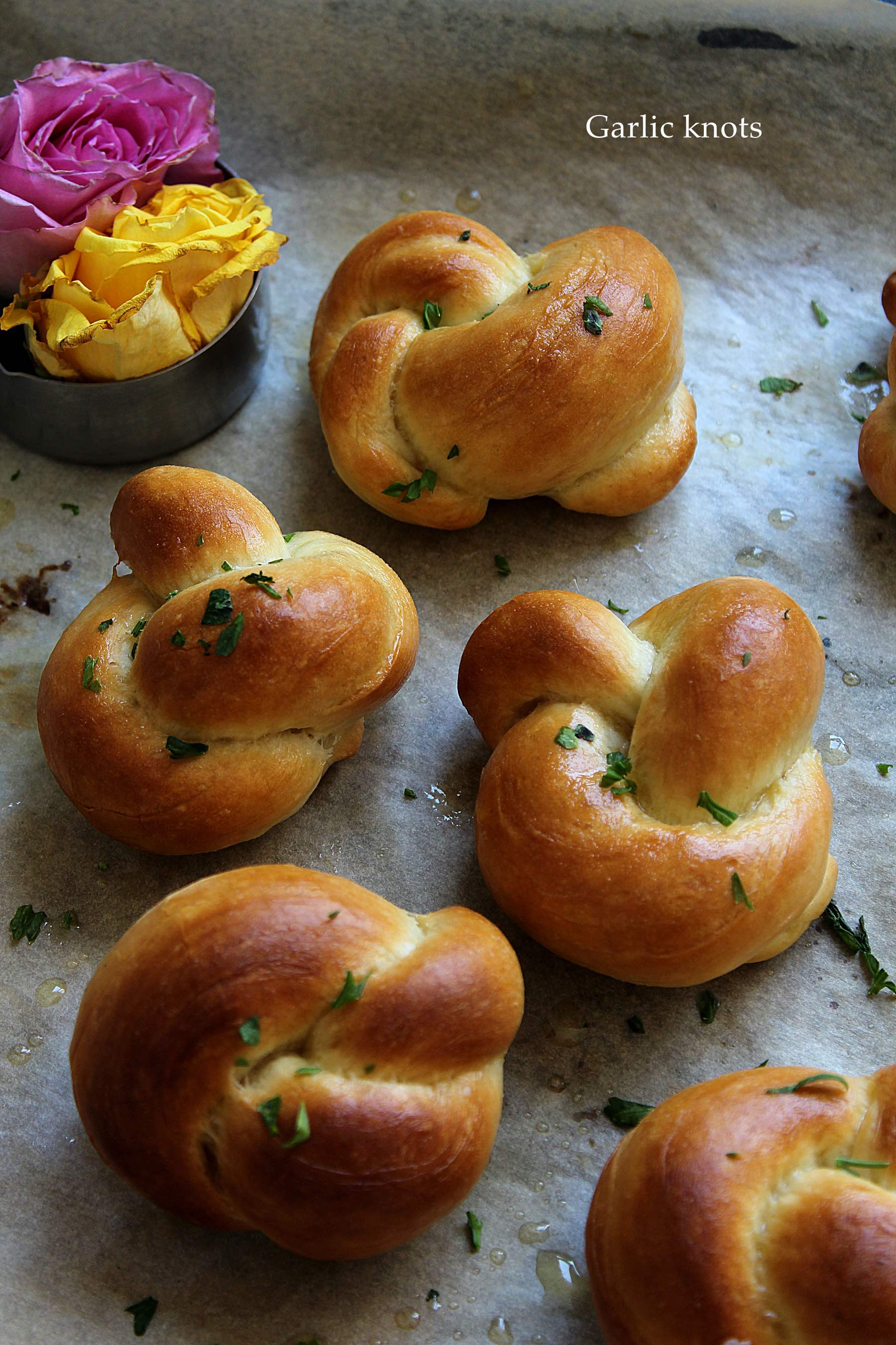 Let me tell you all about these marvelous little things right here... Garlic knots. Basically garlic bread but fancier because shaped into knots. Perfect side for soups or saucy dishes. Buttery, soft and pillowy inside, addictive.