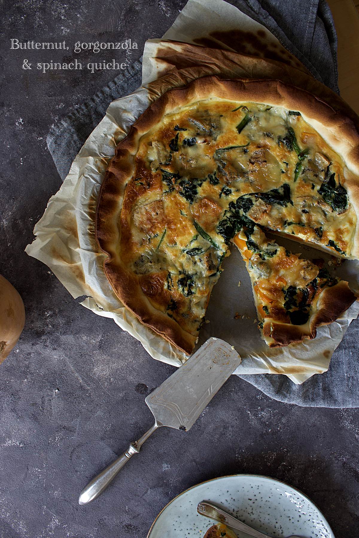 Butternut, spinach and gorgonzola quiche (serves 4-6) :