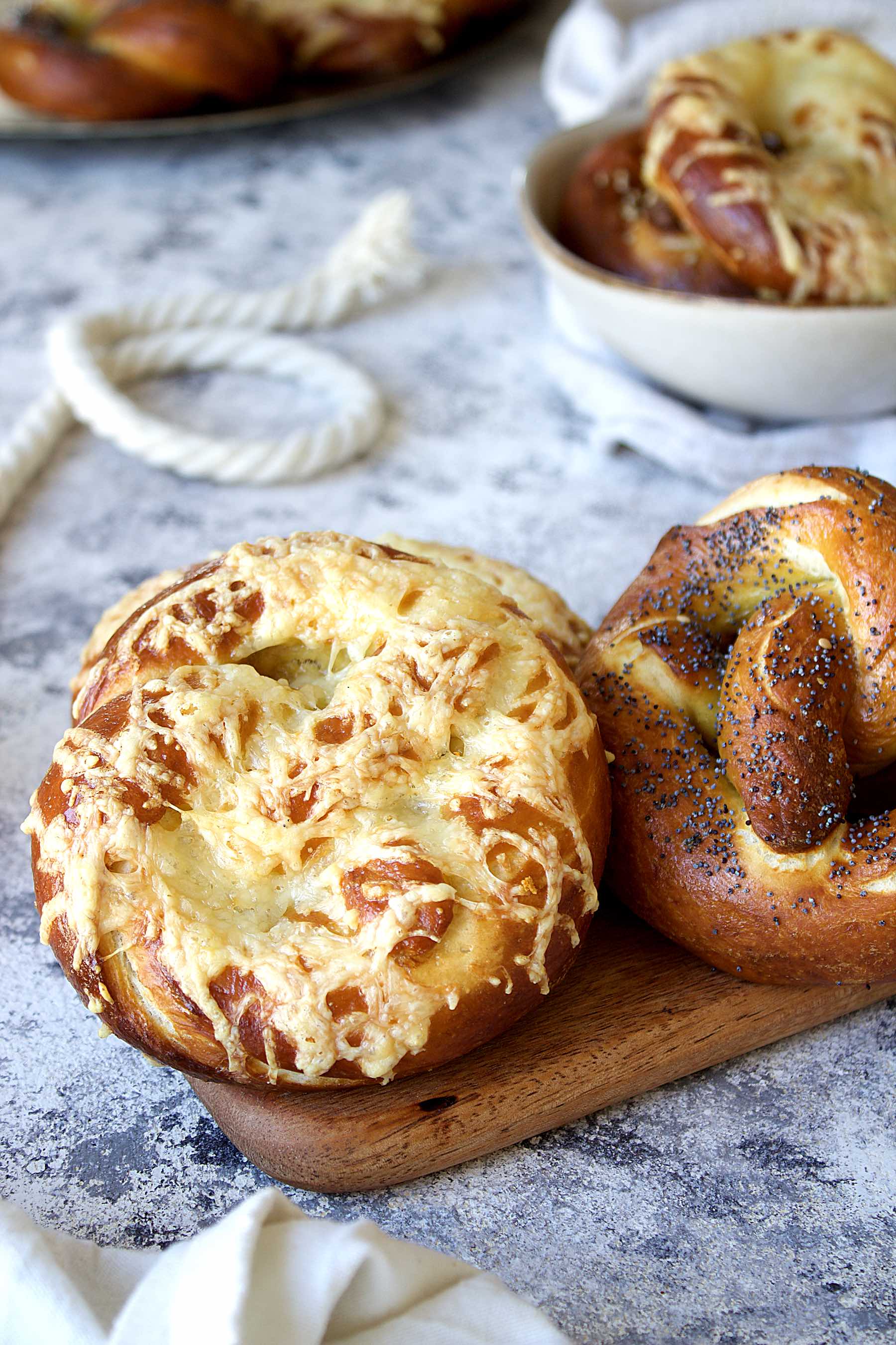 I don't even know how I didn't post this recipe on the blog before, it's a favorite in our home! It's quite easy to make, a bit time consuming as for all dough recipes but also very very addictive. Look at that melted cheese on top! I also made a few with sesame seeds and poppy seeds.