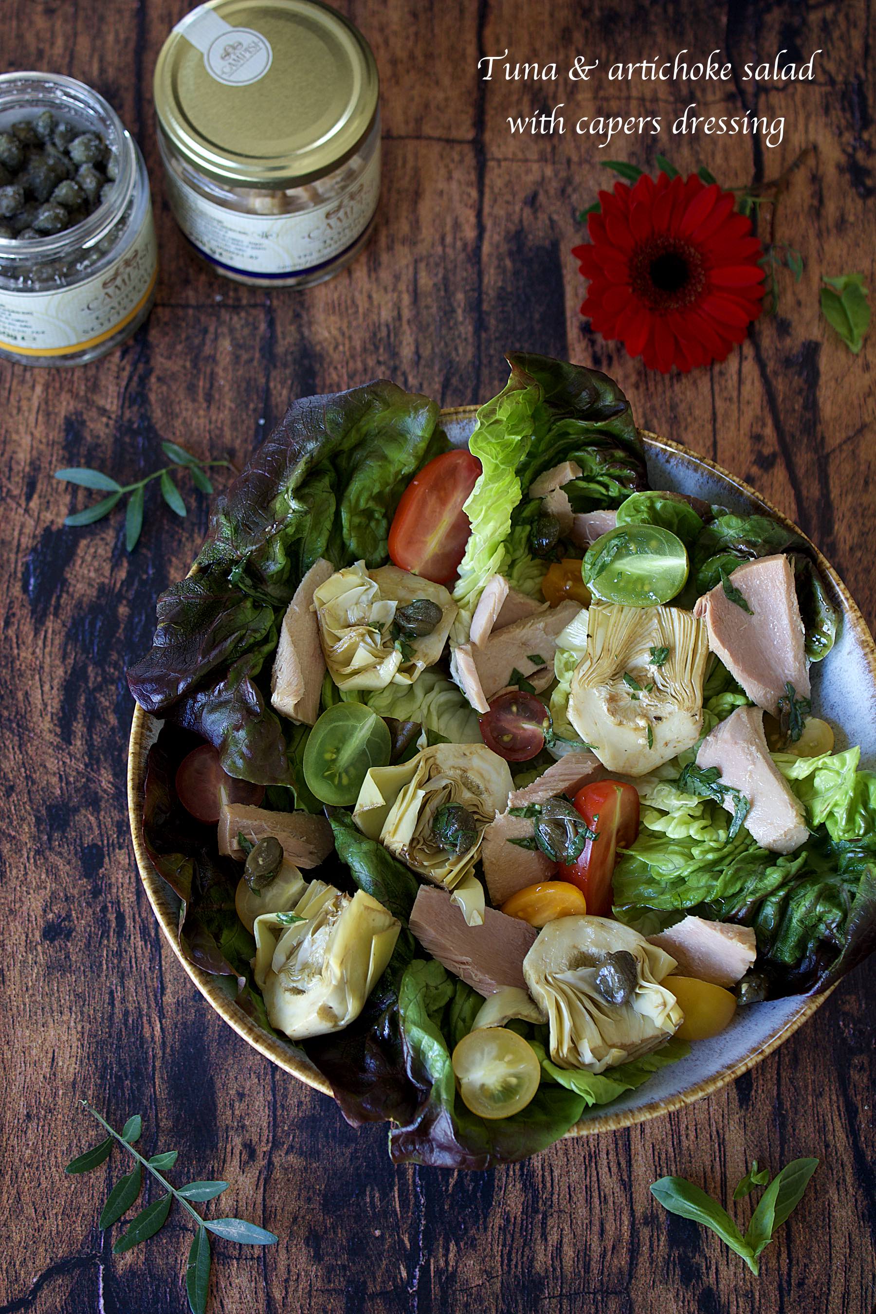 Tuna and artichoke salad, caper dressing (serves 2) :