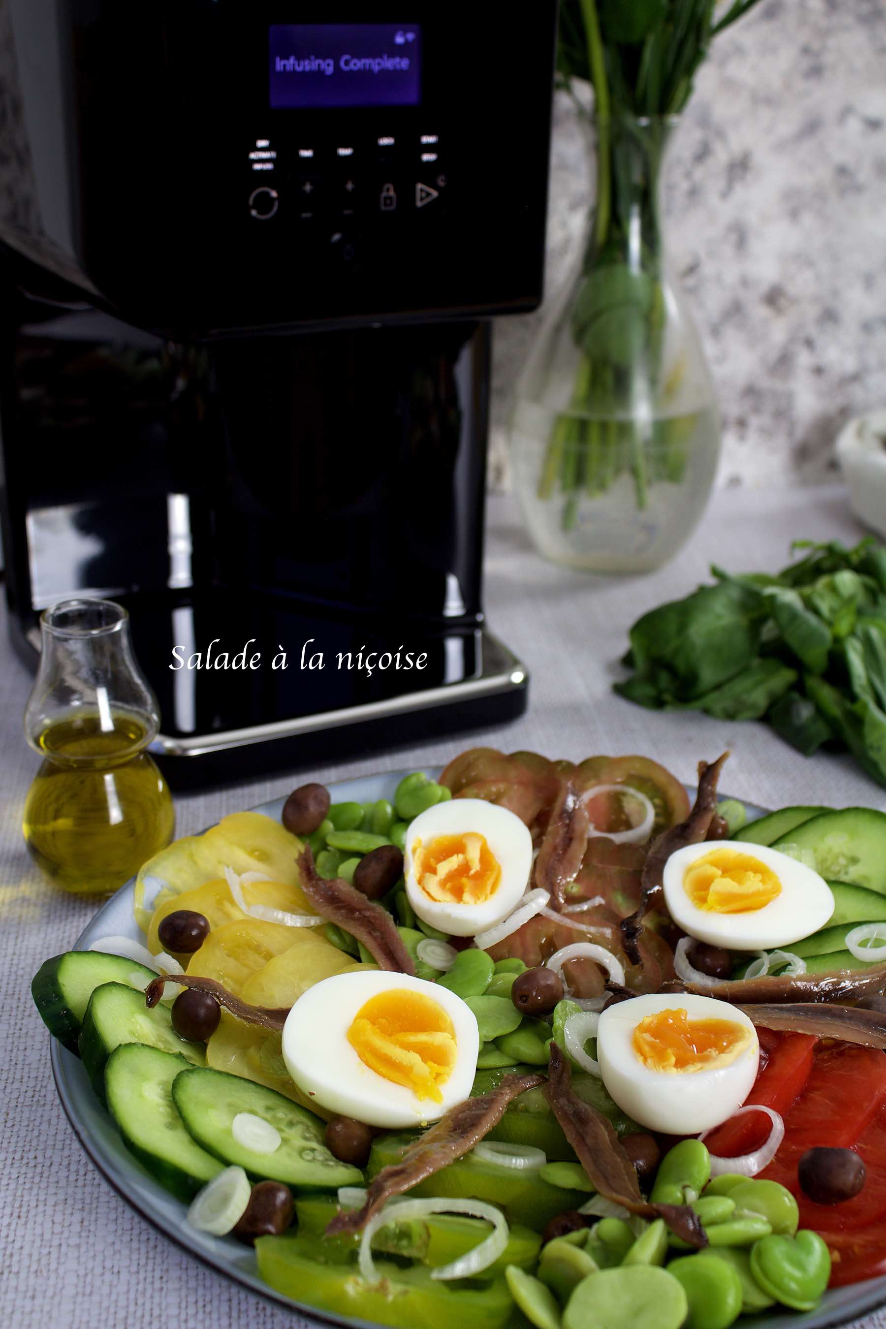 A salad à la niçoise, not exactly traditional but it's good so we don't care. Anchovies, eggs, tomatoes, a few olives and spring onions : we're making the best of the season with all the yummy produces.