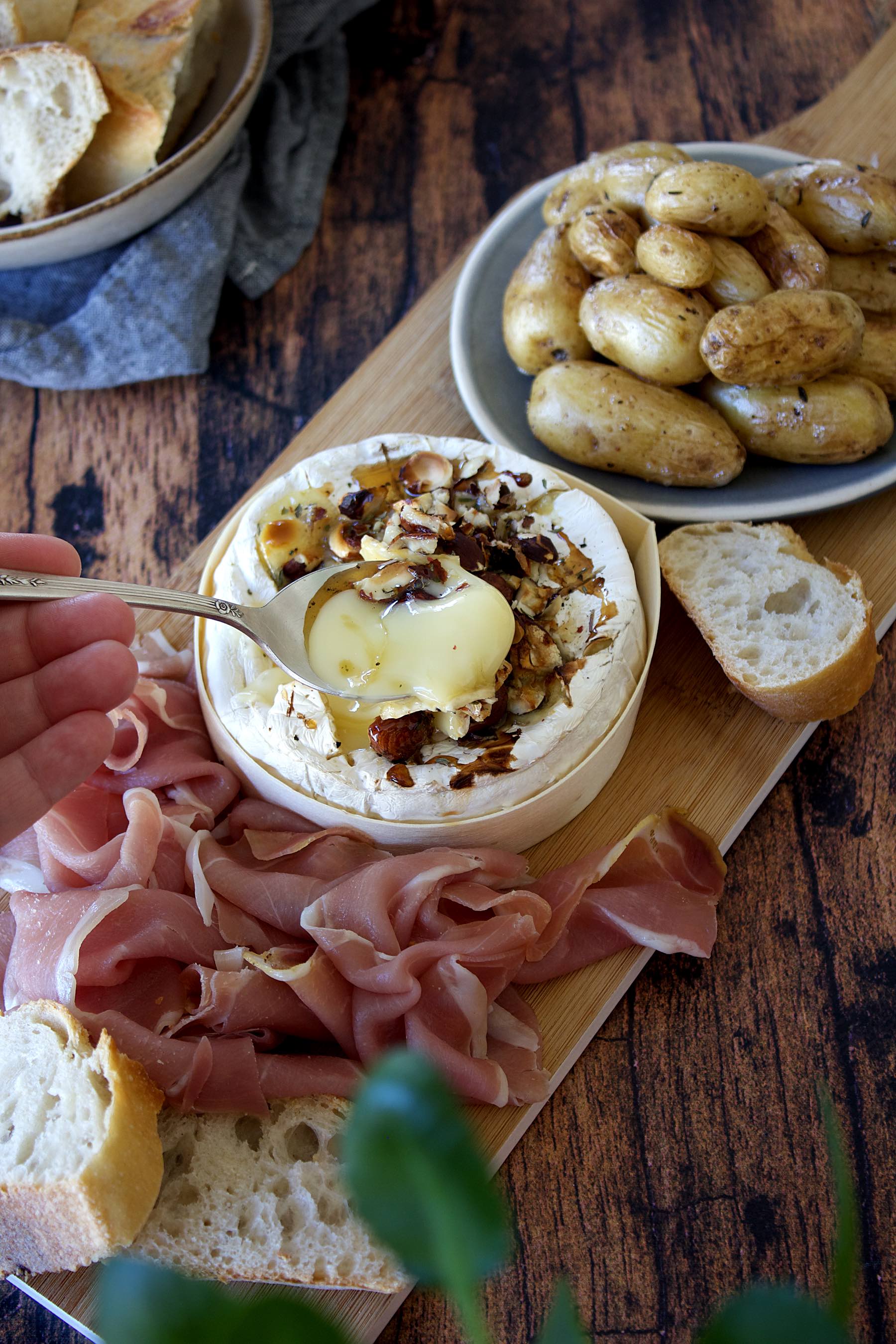 You want to use a raw milk camembert if you can find it because it has a better texture once baked, it's more gooey and runnier. The best is to heat this camembert straight out of the over, with crispy bread, potatoes and prosciutto. And since there's never too much camembert, you can also try this camembert tart !