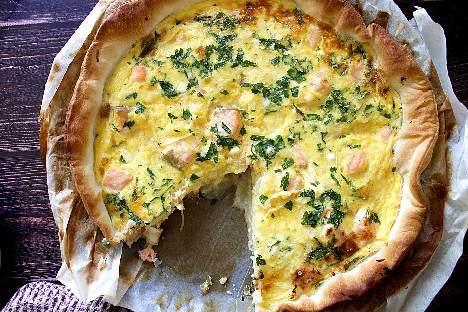 Spaghetti squash and salmon quiche (serves 4-6) :
