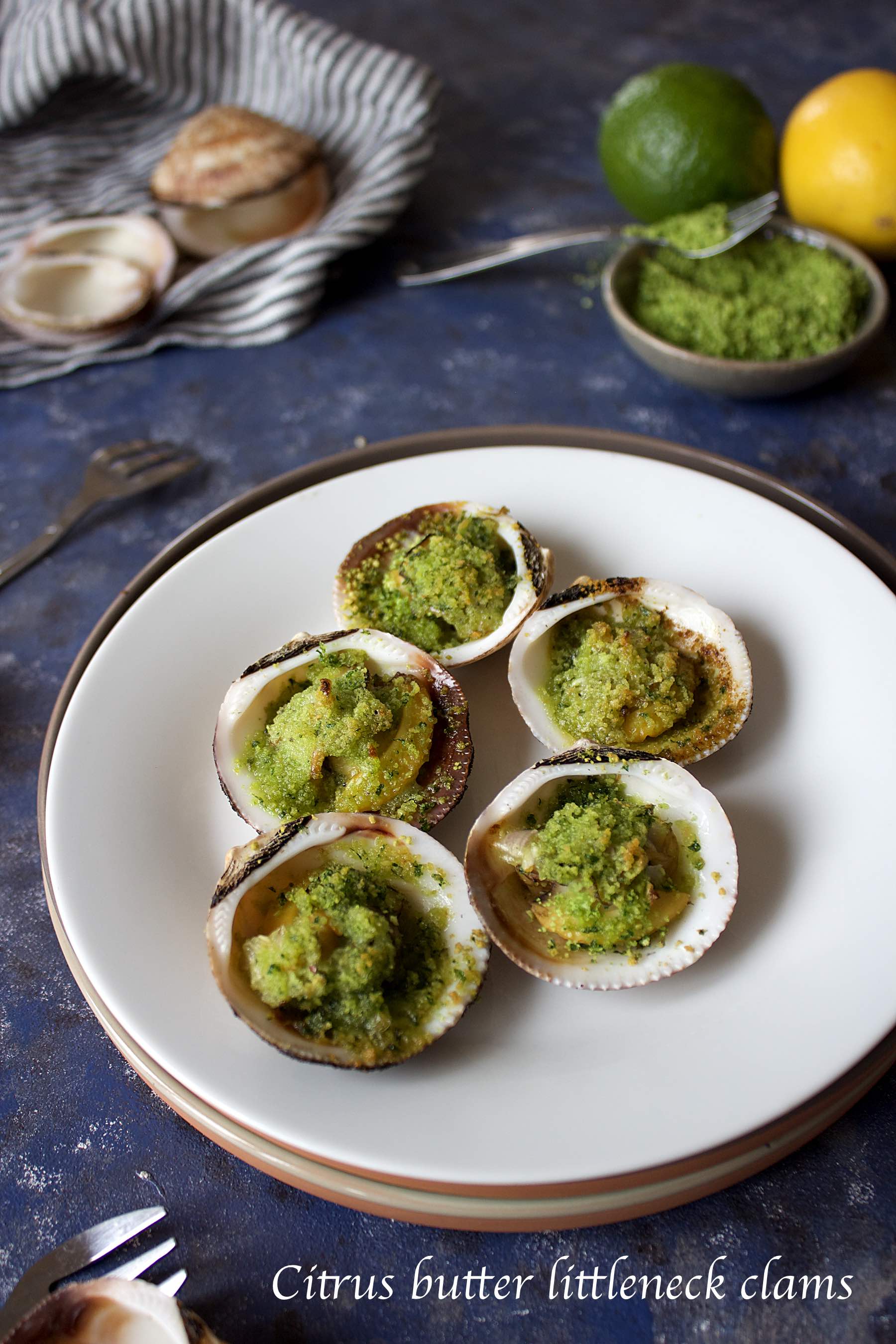 Here is a quick appetizer or starter idea that isn't very common. Littleneck clams in a citrus butter, toasted with parsley breadcrumbs it's so good !