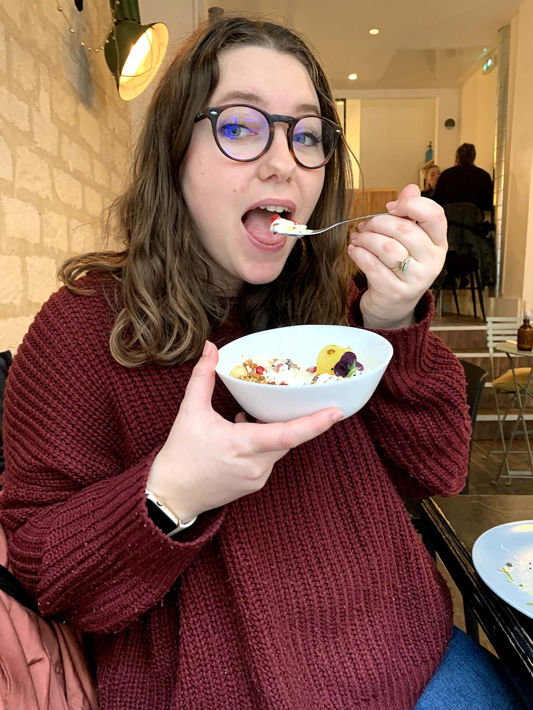 Can we talk about how pretty the sweet bowl are ? Two choices are available, here is the granola bowl. Portion is great, not too big or too small. And the edible flowers ? I love them. SO cute.
