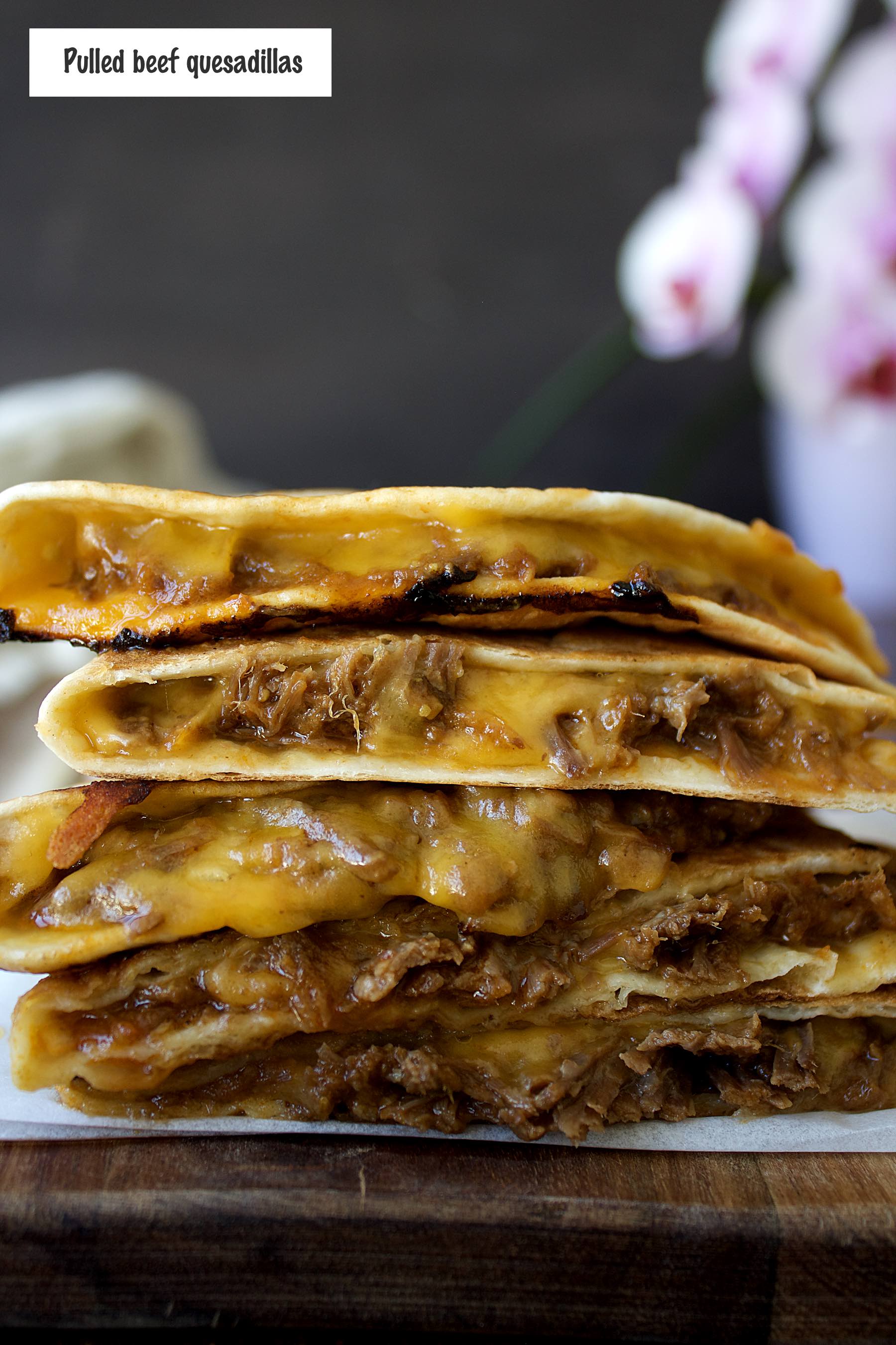 What's a quesadila ? It's a mexican dish, a tortilla filled with cheese and meet. Here I made pulled beef with a lot of spices and added some delicious melty cheddar. It's great and easy to make, perfect for lunch if you've made the meat ahead.