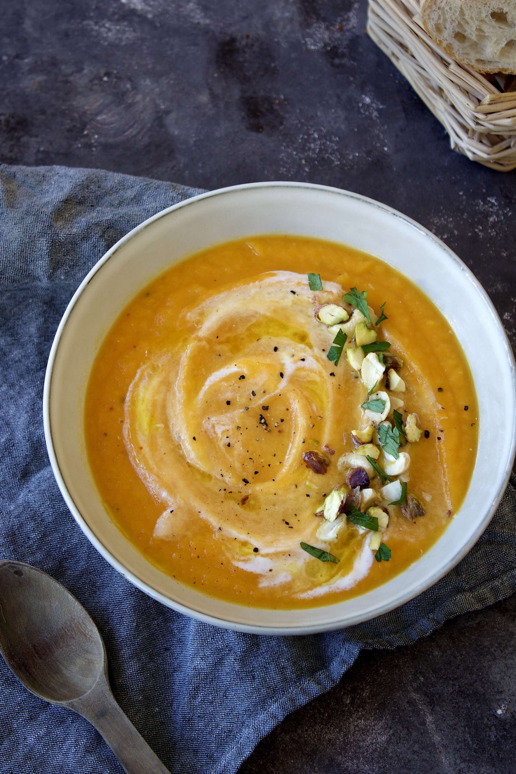 This gorgeous orange soup is made with roasted butternut squash and it's available in my newest ebook Autumn. It will be translated soon and I will let you know when it's out for orders. In the meantime you can check my shop.