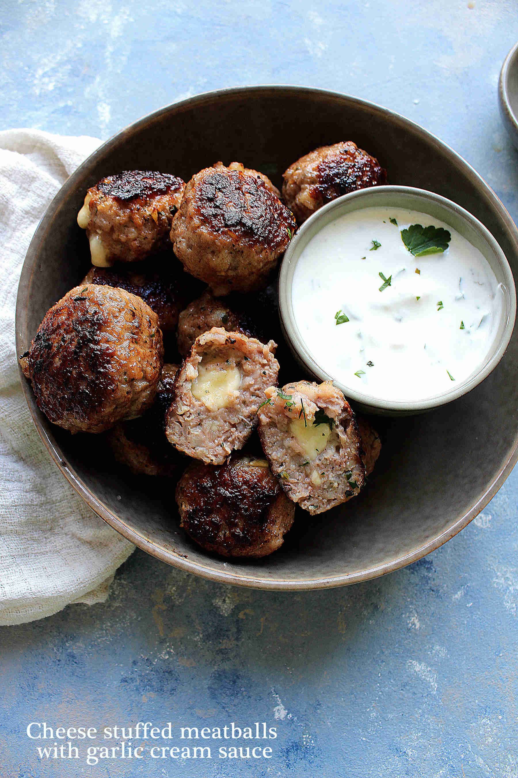 I love meatballs and these ones are no exceptions ! Generously sized pork meatballs with a hint of lemon zest and a deliciously creamy blue cheese sauce for some dipping.