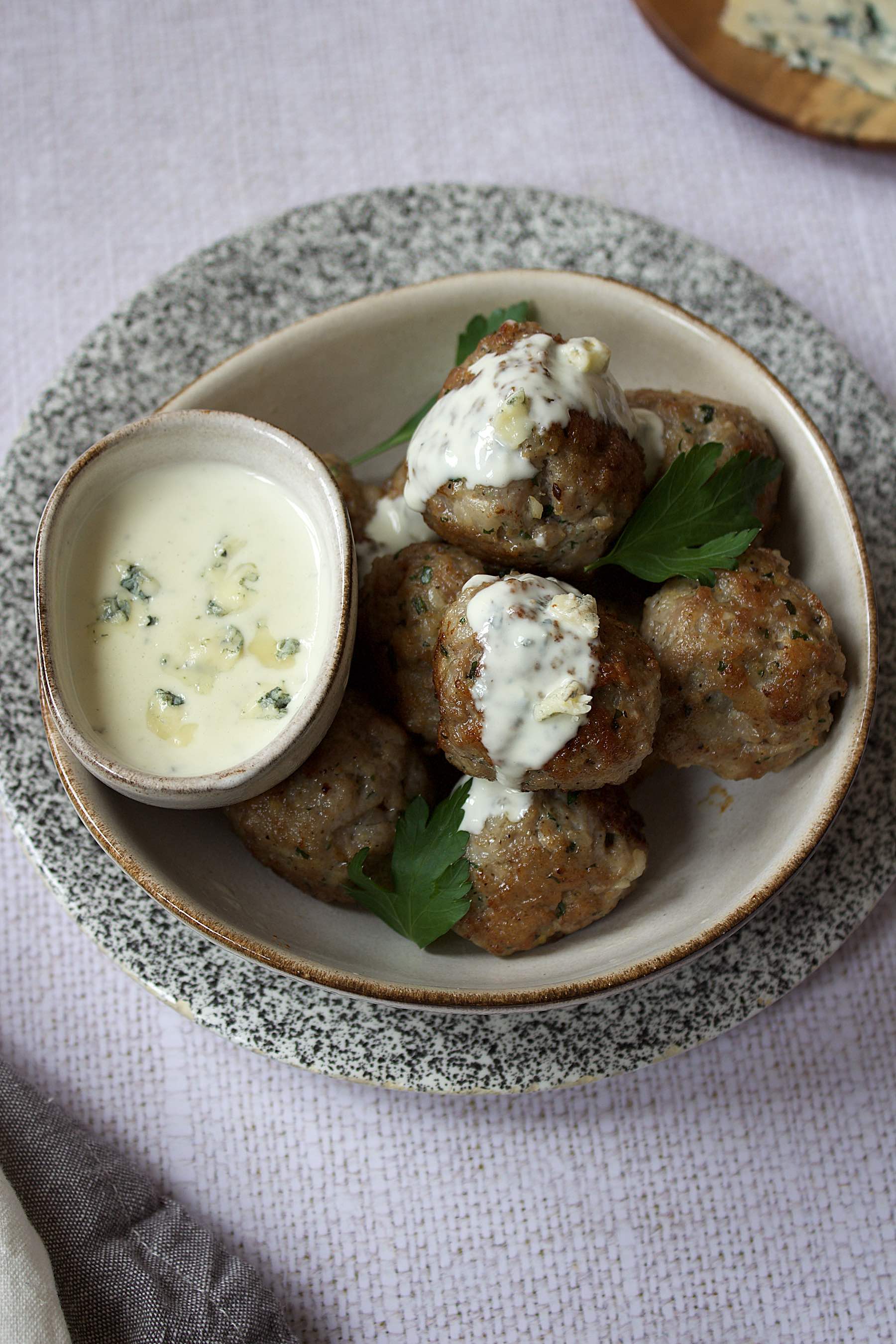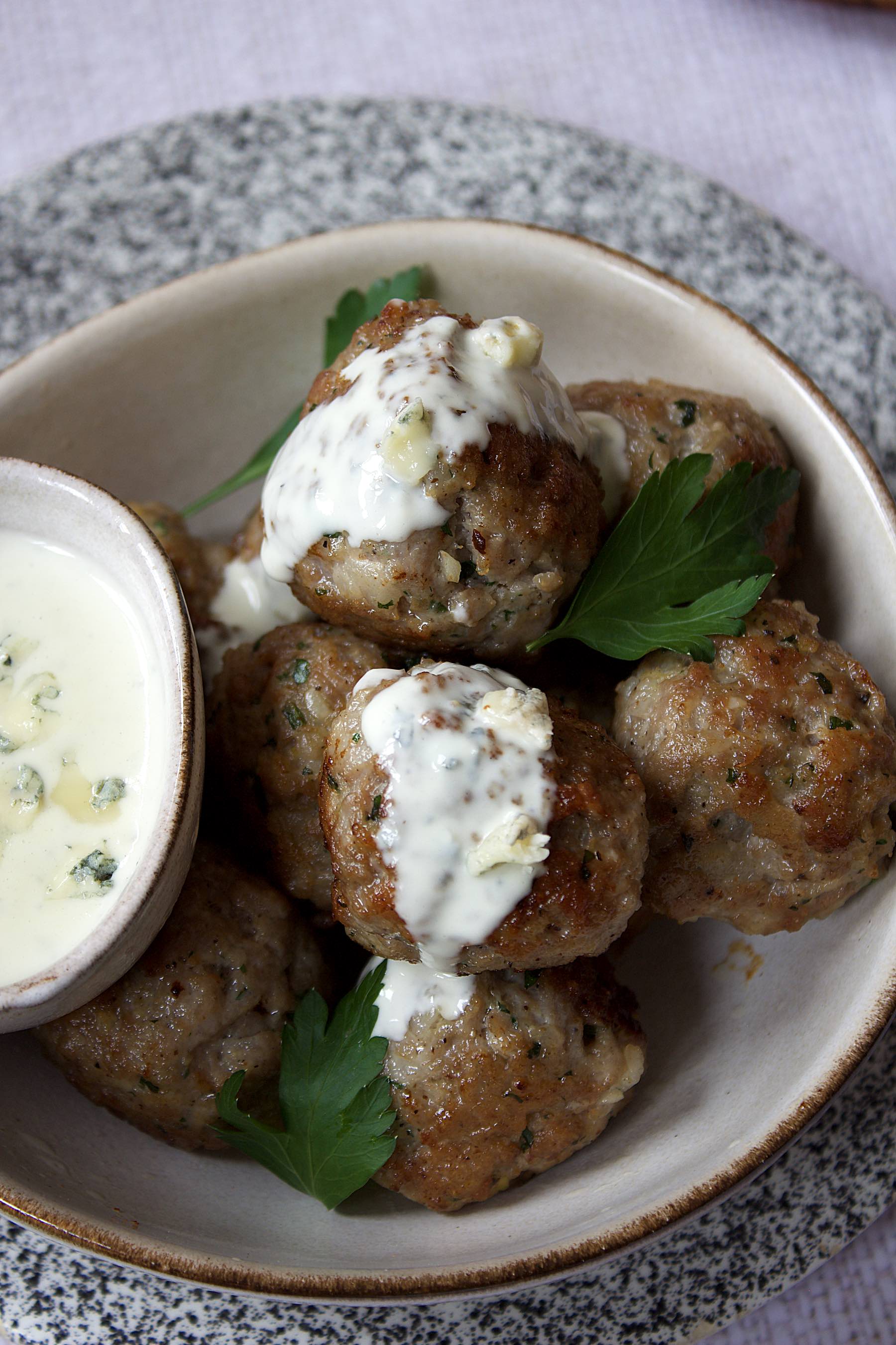 Pork meatballs with blue cheese sauce (serves 3) :