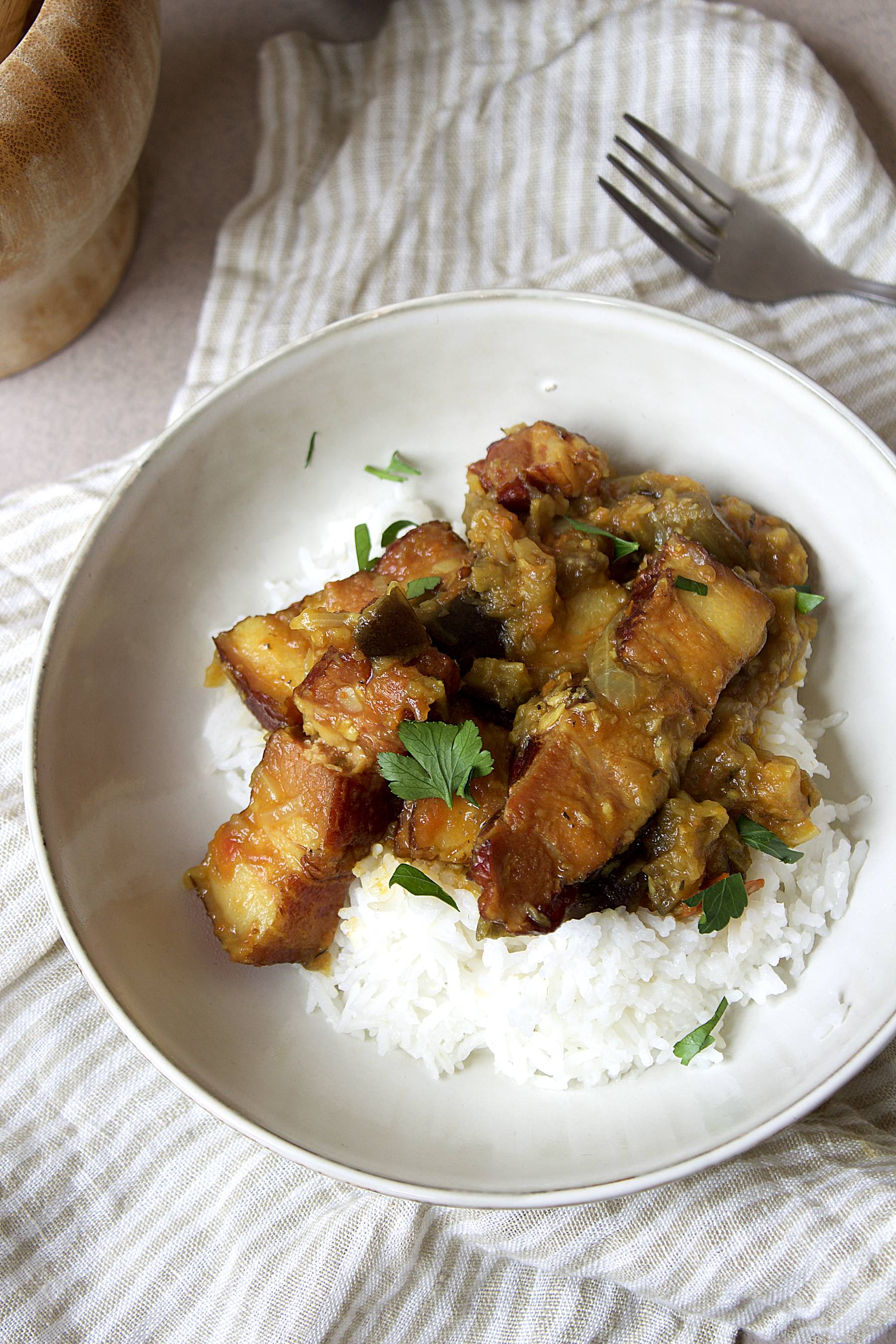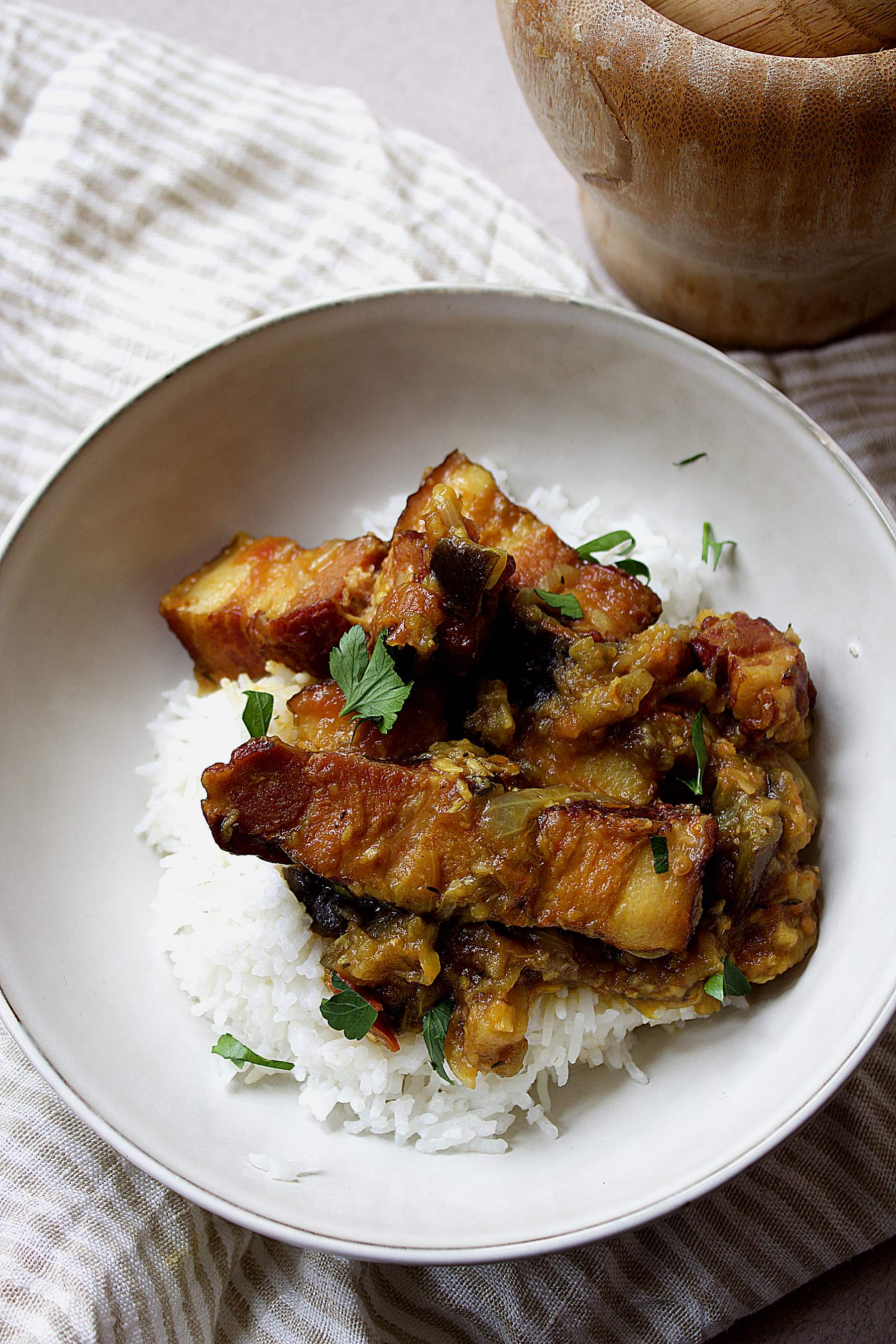 Reunion Island smoked pork and eggplant stew (serves 6) :