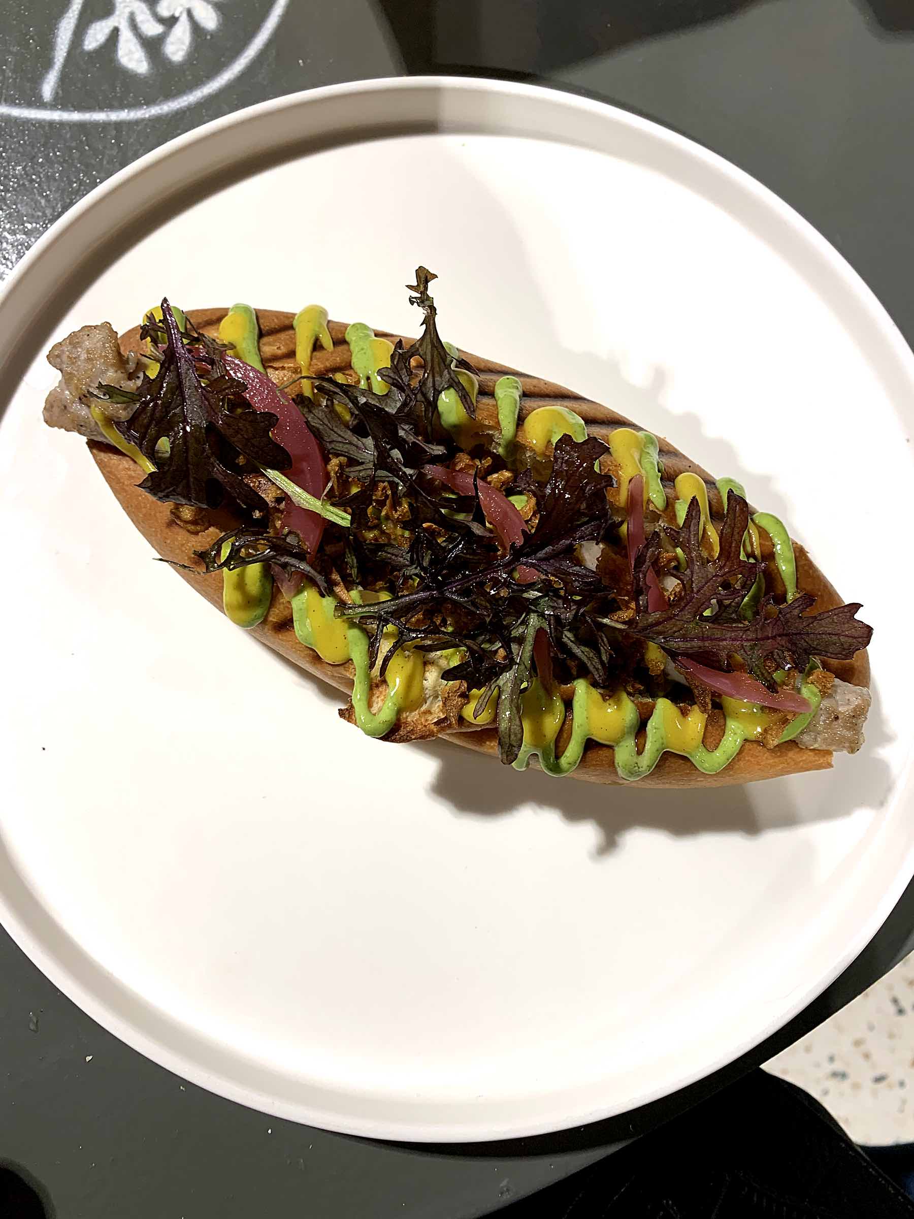 You'll find the Rotisserie, a food stand where you can have an amazing deluxe poultry hot dog (9€) or dive into a plate of bbq chicken wings (12€). Such a good spot, we loved everything !