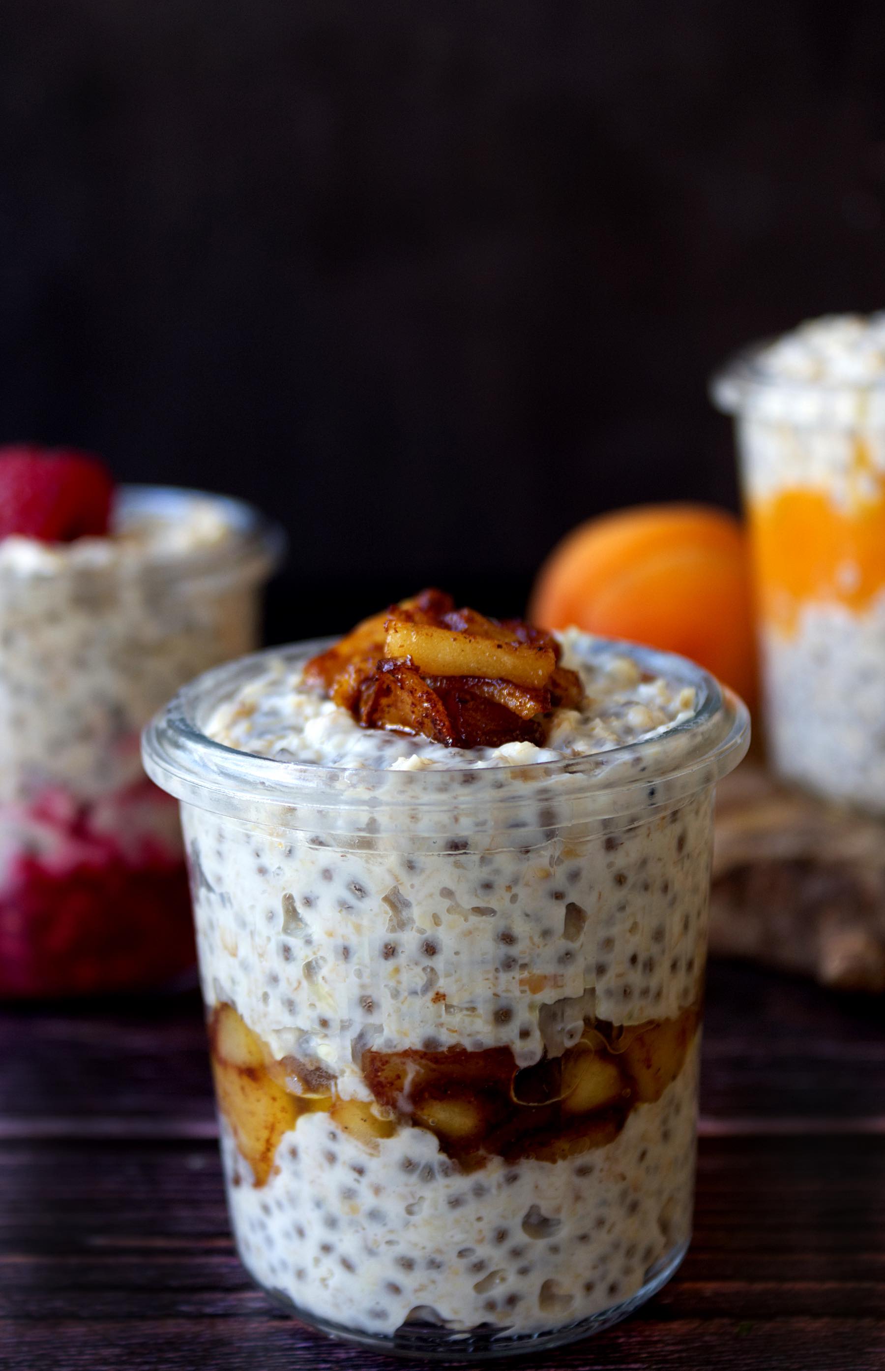 Fill half a jar with overnight porridge, add some caramelized apples and top with more porridge. Add some apples on top if you feel like it.