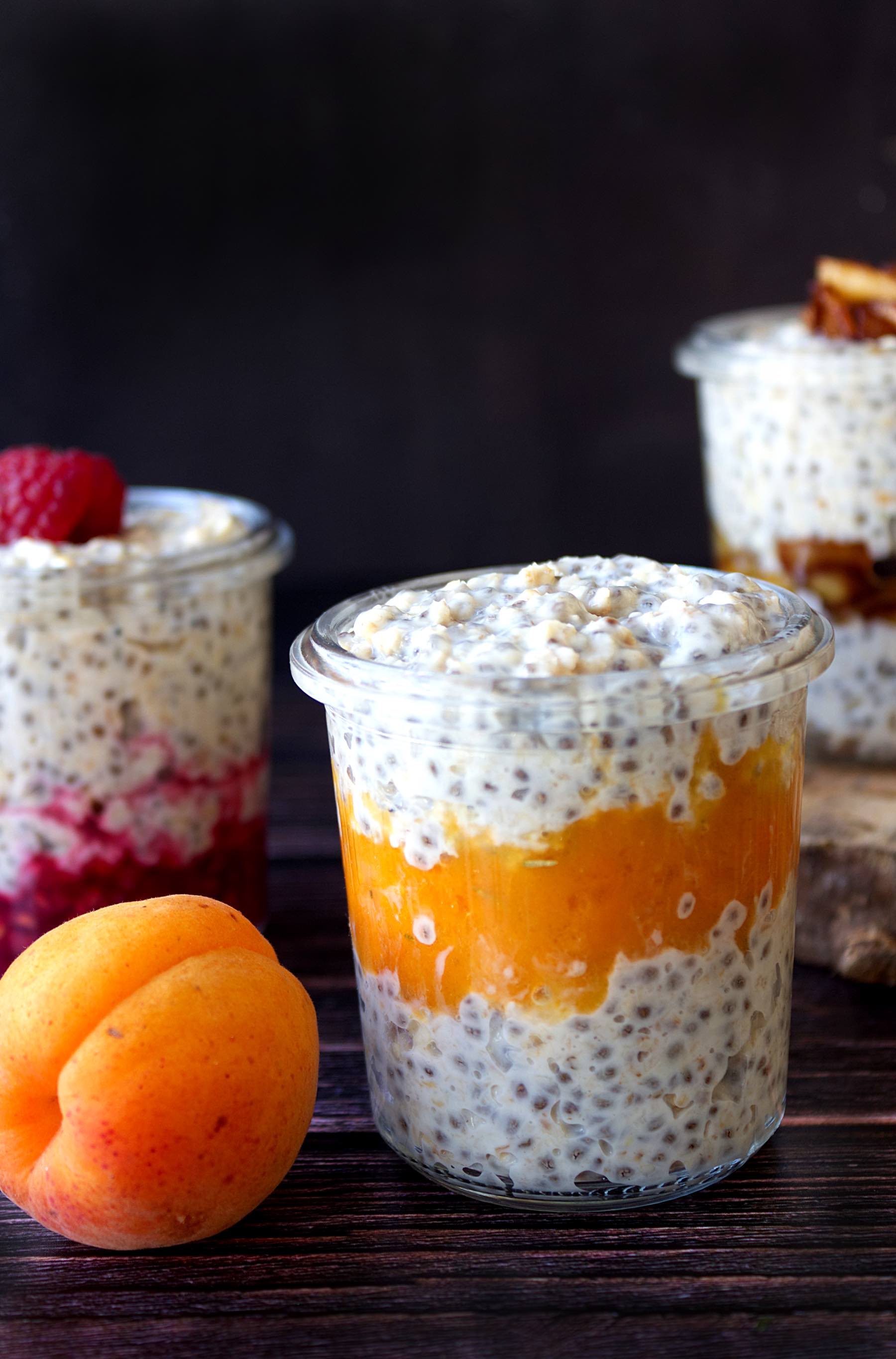 Overnight oats, 3 ways : apricot, raspberry and apple (serves 1) :