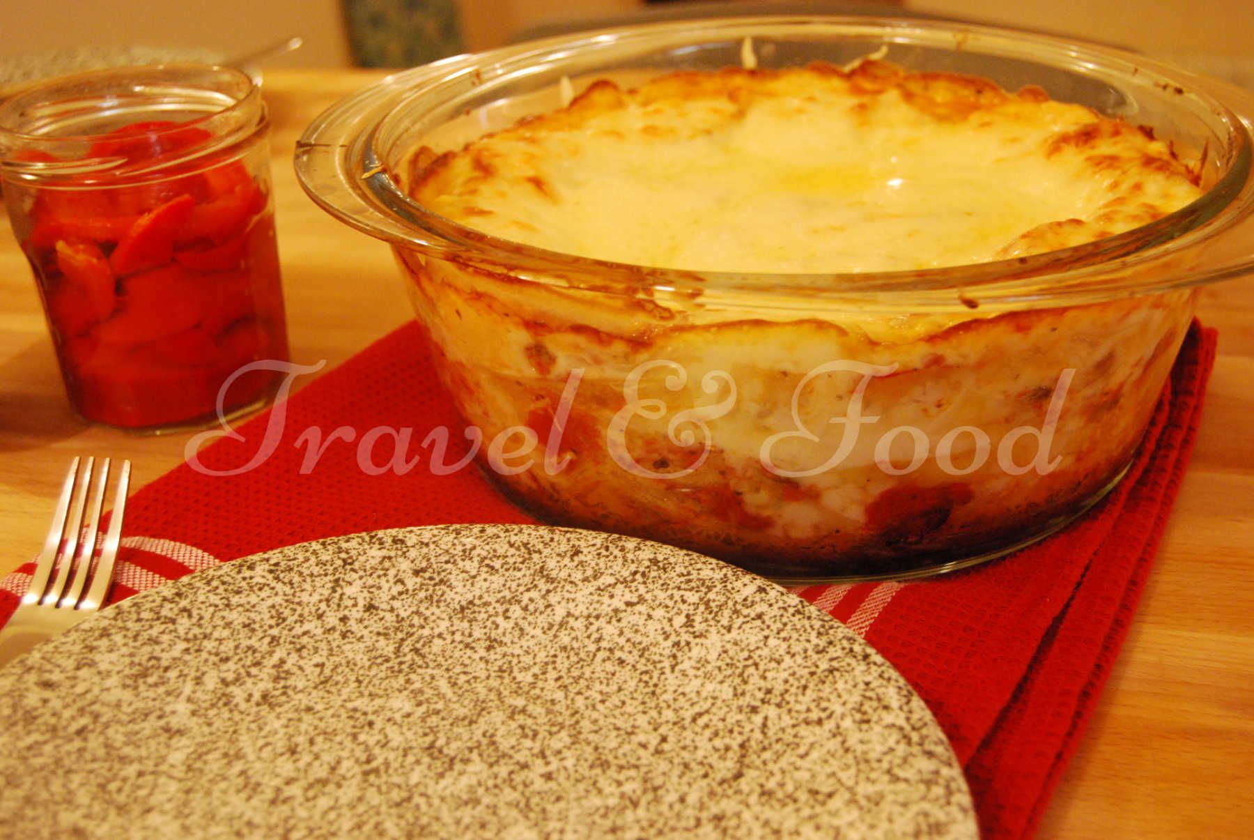 Prenez un plat à lasagnes (ou en tout cas, un plat qui va au four) et commencer à alterner les couches de pâtes, de sauces tomate et de béchamel. Répétez jusqu’à épuisement du stock.