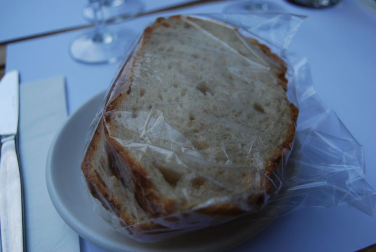 Quand on a demandé un peu de pain, on nous l’a donné pré-emballé dans du plastique. Rigolo.