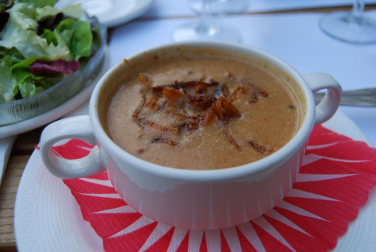 J’ai opté pour le menu du jour à 16CHF (13€ environ) avec une entrée et un plat. En entrée, c’était un potage au fromage et aux oignons accompagné d’une salade verte. C’était super bon mais très très salé.