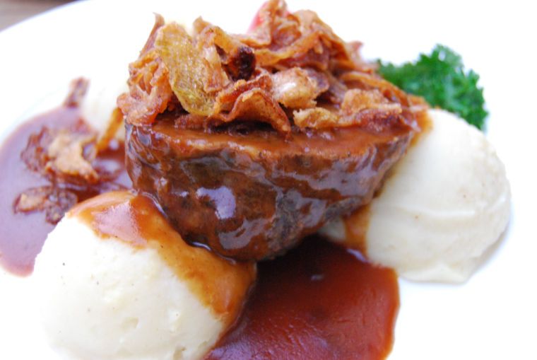 En plat, le restaurant proposait un rôti haché avec une purée de pommes de terre, du jus de viande et des oignons croustillants. La purée était plutôt bonne mais la texture de la viande était assez… Etrange. Le tout également très salé. Est-ce coutume en Suisse ?