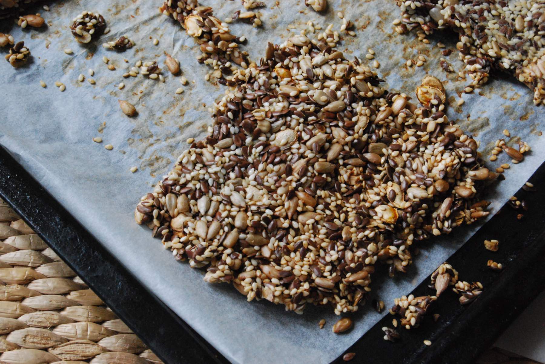 C’est super simple, vous avez besoin de graines (2 tasses* de votre choix) et d’eau. Après vous assaisonnez à votre goût et au four !