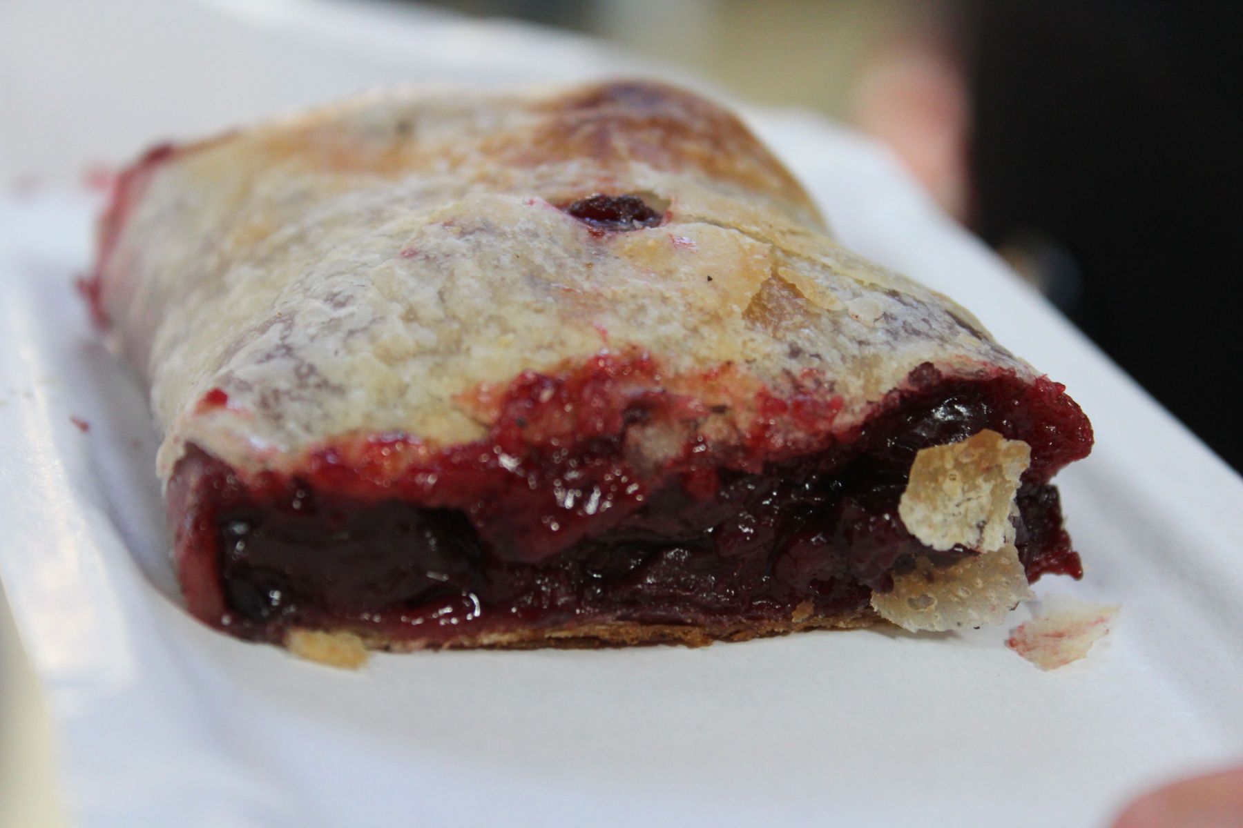 Le petit nom de cette merveille hongroise c’est le Rétes. Un strudel, ici à la cerise, carrément dément. L’intérieur est épais, un peu gluant mais pas péjorativement. C’est super addictif et ils en font à pleins de saveurs différentes. (Environ 1€)