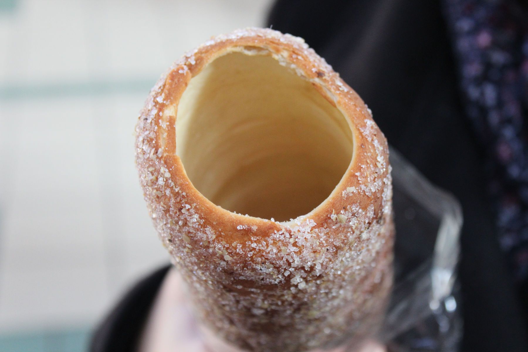 Les Kürtőskalács, on en trouve presque partout. C’est un gâteau sucré cuit au feu autour d’un moule, d’où le trou au milieu. Celui ci était à la noisette mais il y en avait au moins une dizaine de différentes saveurs : coco, cannelle, sucre, chocolat…Etc. (2 à 3€ selon les endroits)