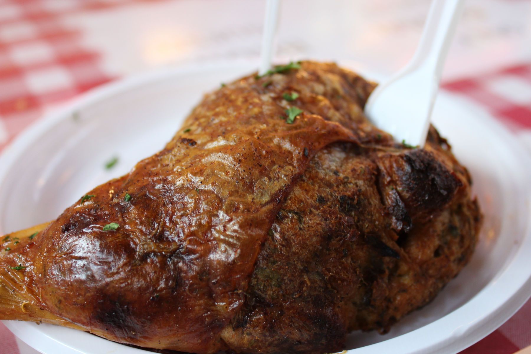 Le töltött csirke est une autre découverte intéressante. Une cuisse de poulet farcie sous la peau avec une farce à base d’oignons et de pain. Un peu lourd mais goûteux. (Environ 4€)