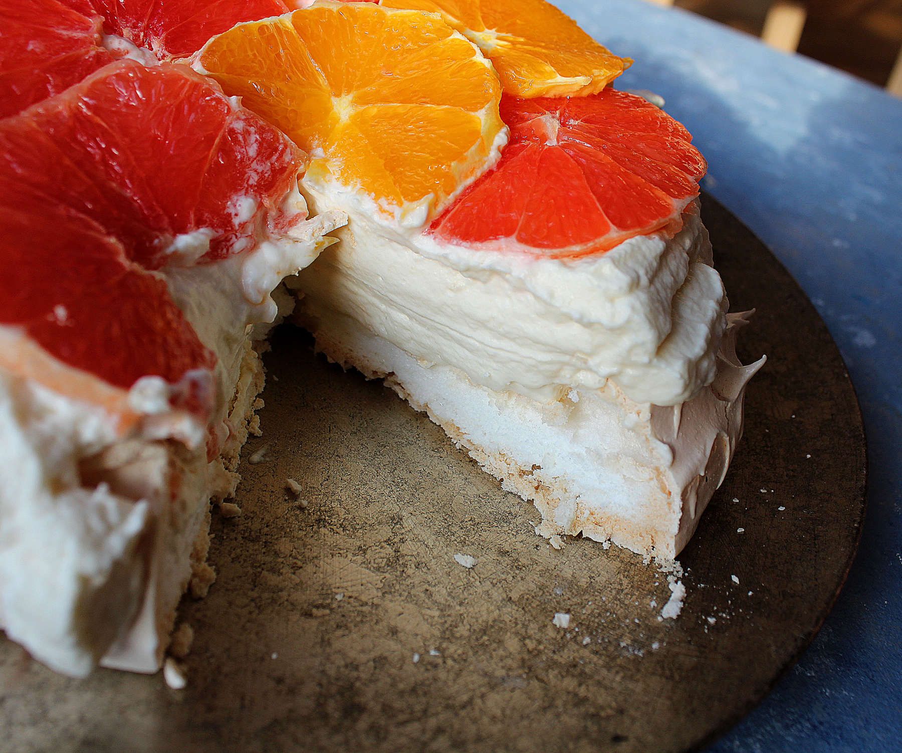 Ajoutez la crème délicatement sur la meringue. Décorez avec les fruits, toujours délicatement pour qu’elle ne s’affaisse pas.