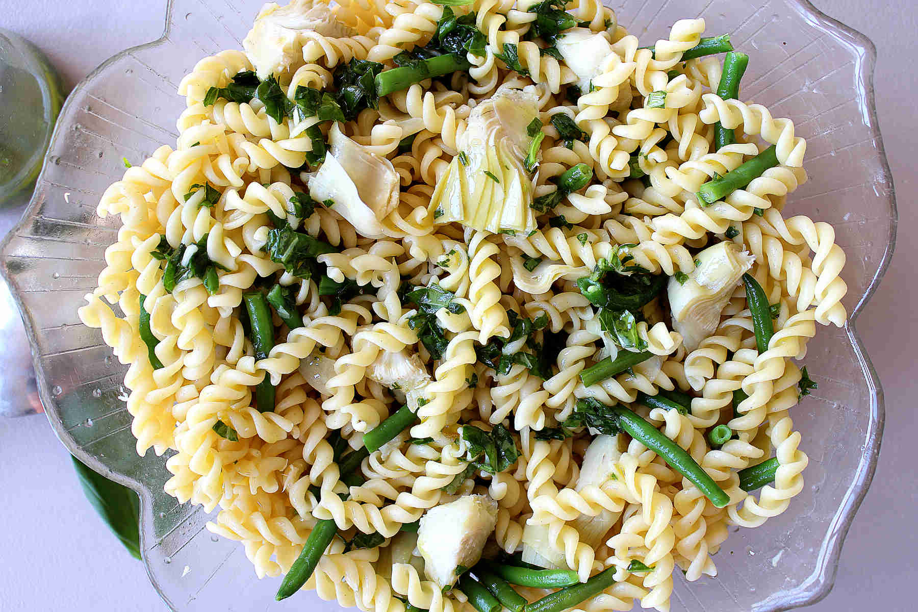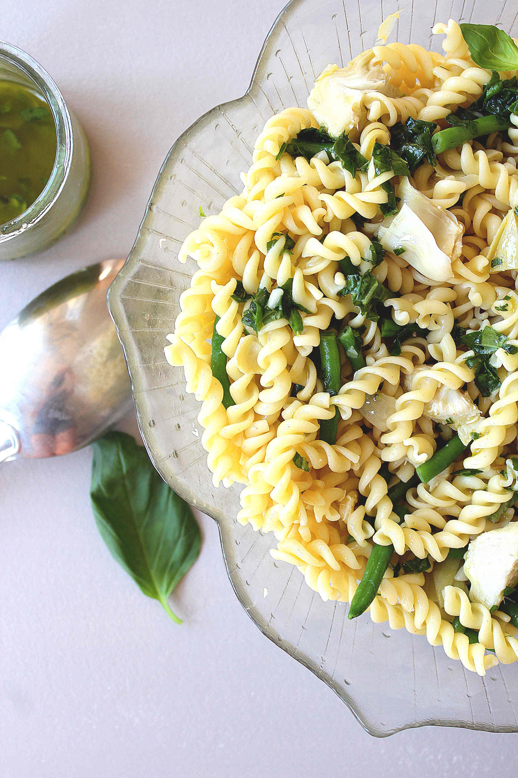 Salade de pâtes à l’artichaut et vinaigrette citronnée au basilic (4-6 personnes) :