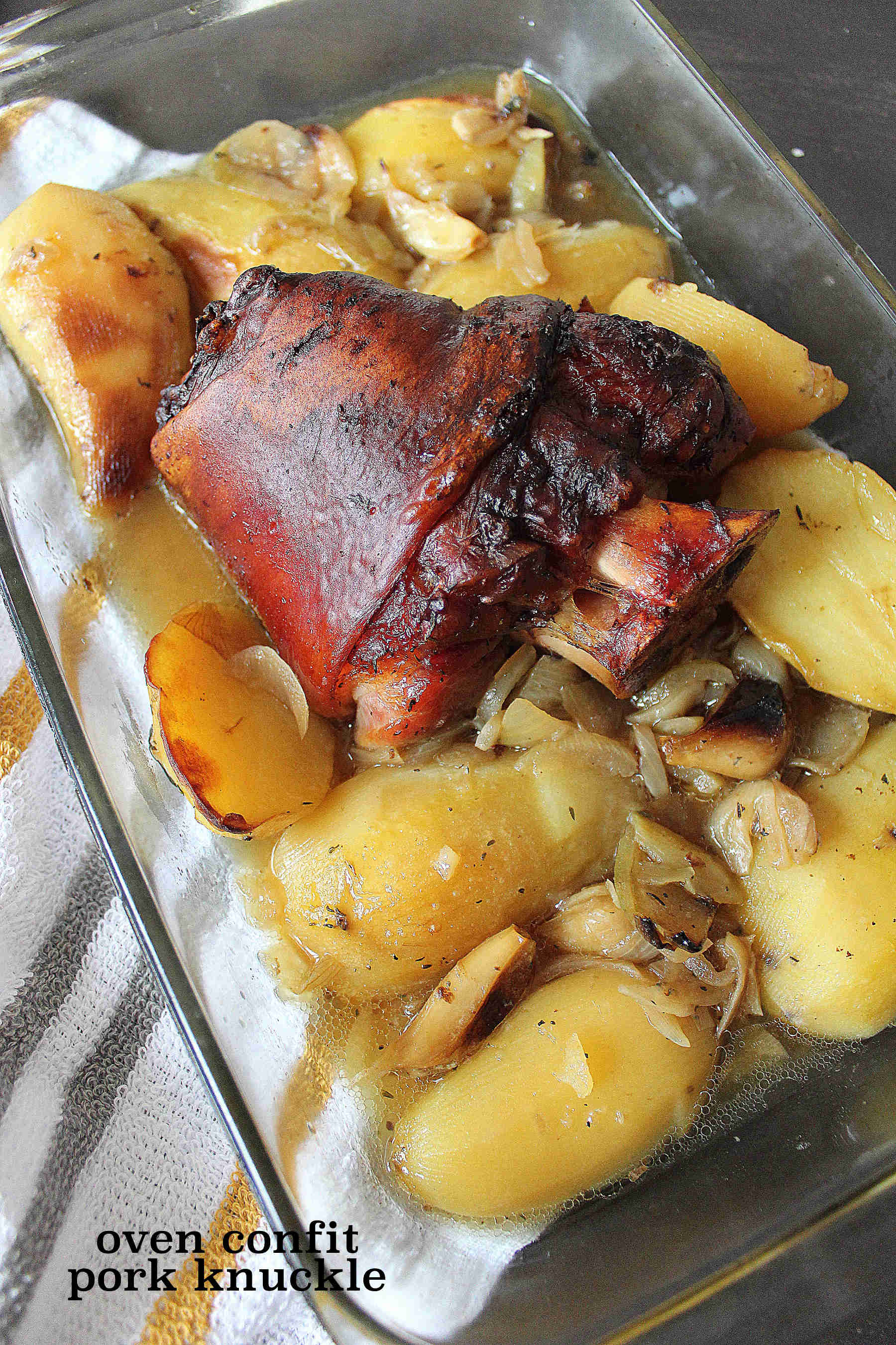 Pas la plus photogénique des recettes je vous l’accorde, mais ce jarret confit est tellement fondant qu’il avait sa place sur le blog! Ça prend du temps, certes, mais ça en vaut largement la peine. Avec quelques pommes de terre, les gousses d’ail confit et la sauce, vous allez vraiment vous régaler.