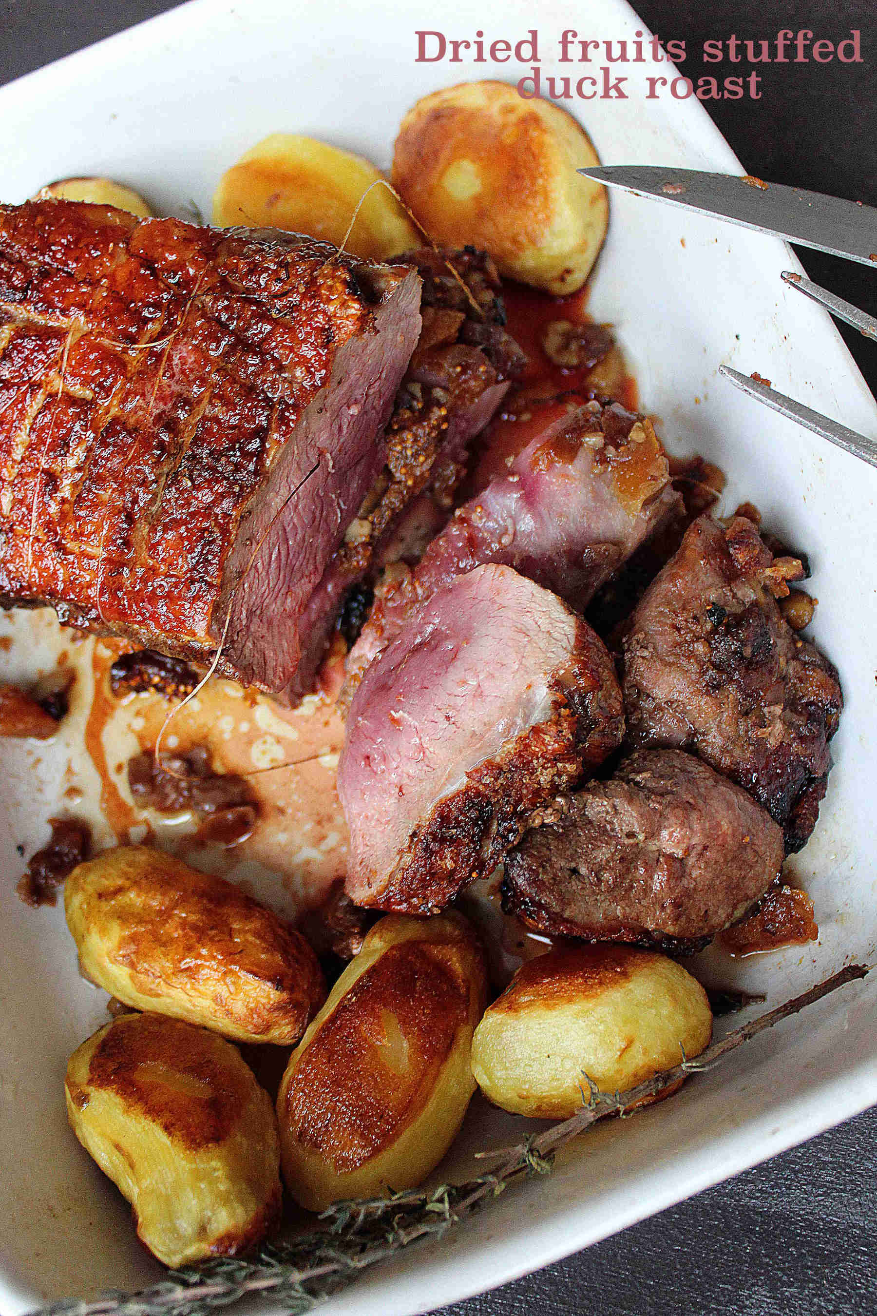 Rôti de magret de canard farci aux fruits secs (4 personnes) :