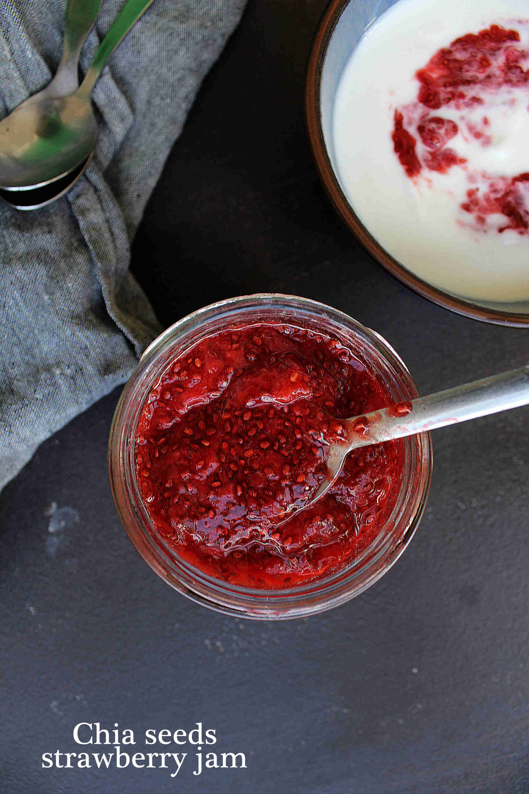 Laissez reposer 30 minutes à température ambiante pour laisser les graines de chia gélifier la confiture.