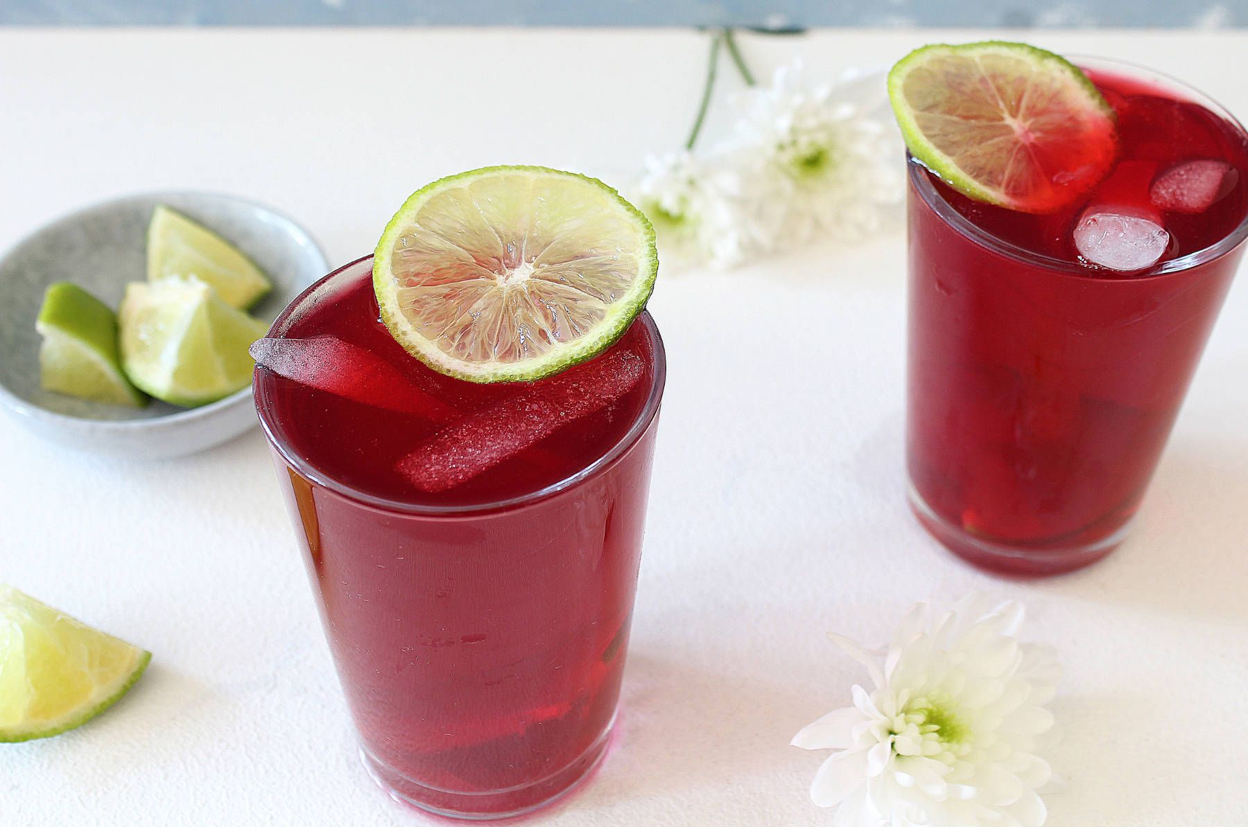 Le printemps est là donc je vous propose aujourd’hui une simple concoction de boisson rafraîchissante à l’hibiscus ! Une infusion que l’on boit glacée, légèrement sucrée et avec un peu de citron vert, c’est un régal.