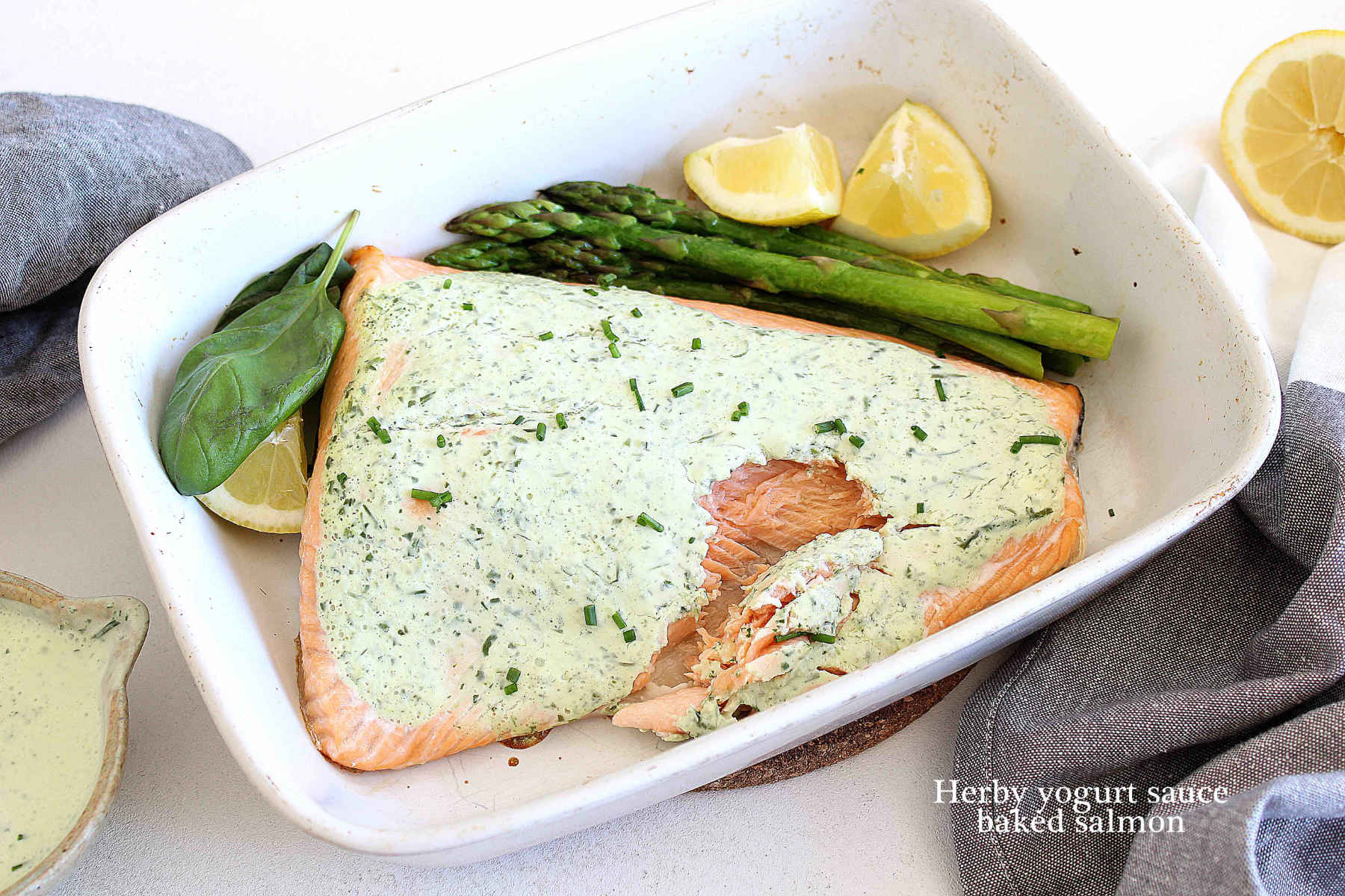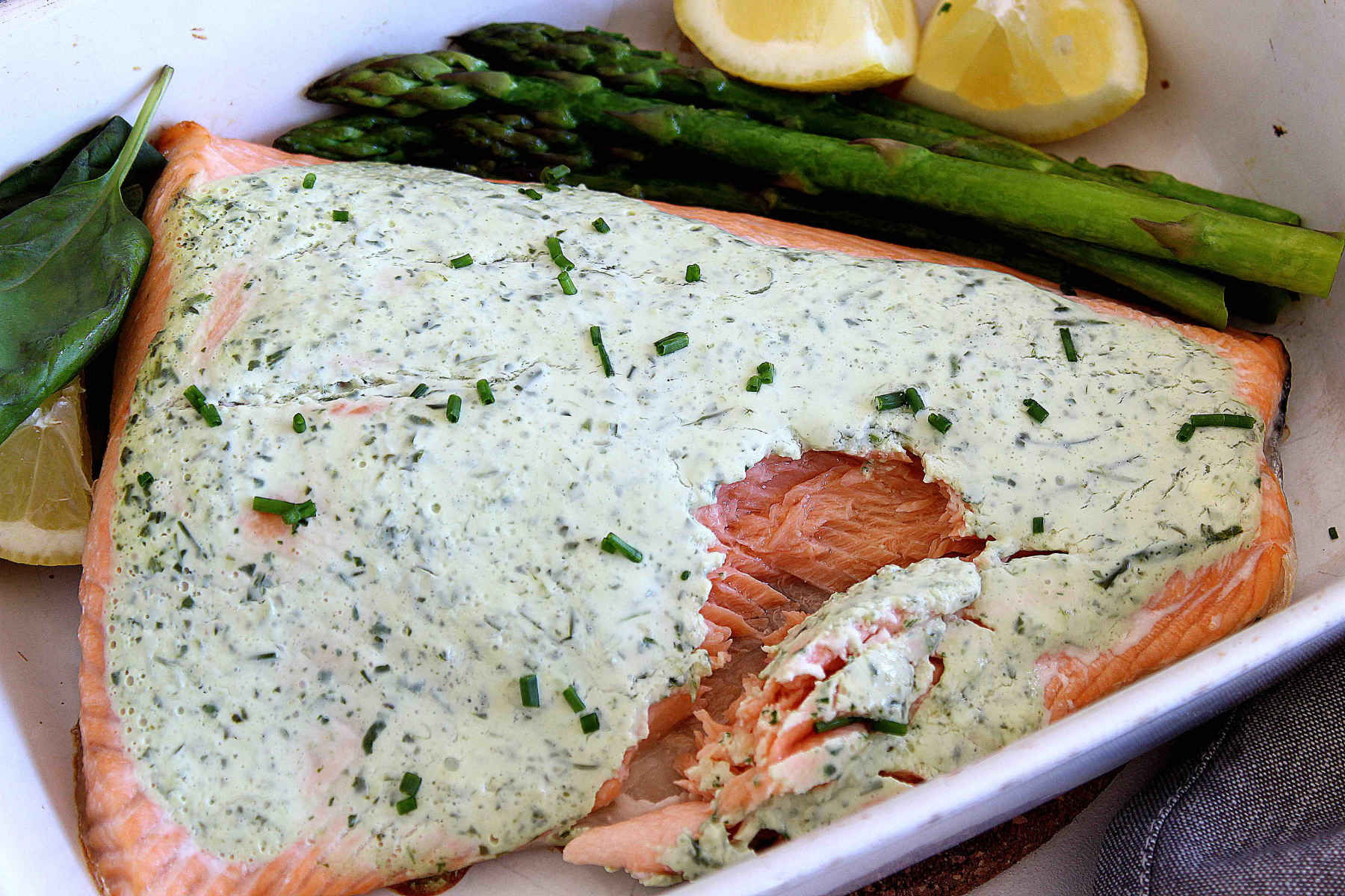 Saumon au four à la sauce aux herbes (4 personnes) :