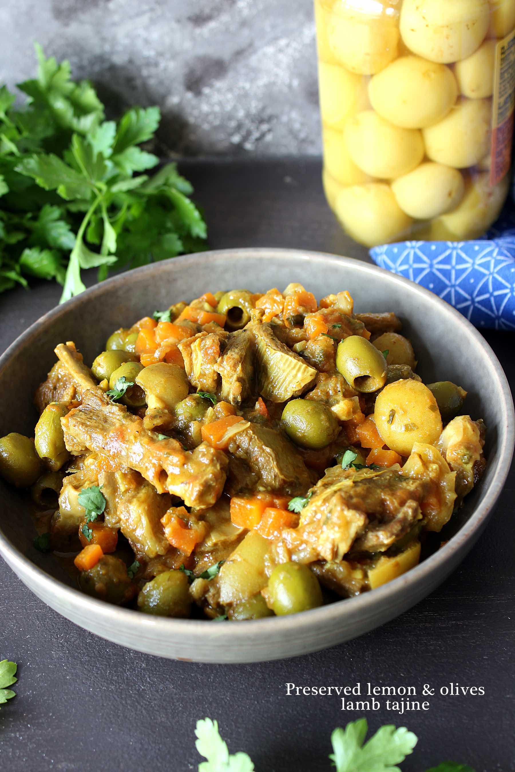 Tajine d'agneau aux citrons confits et olives (4 personnes) :