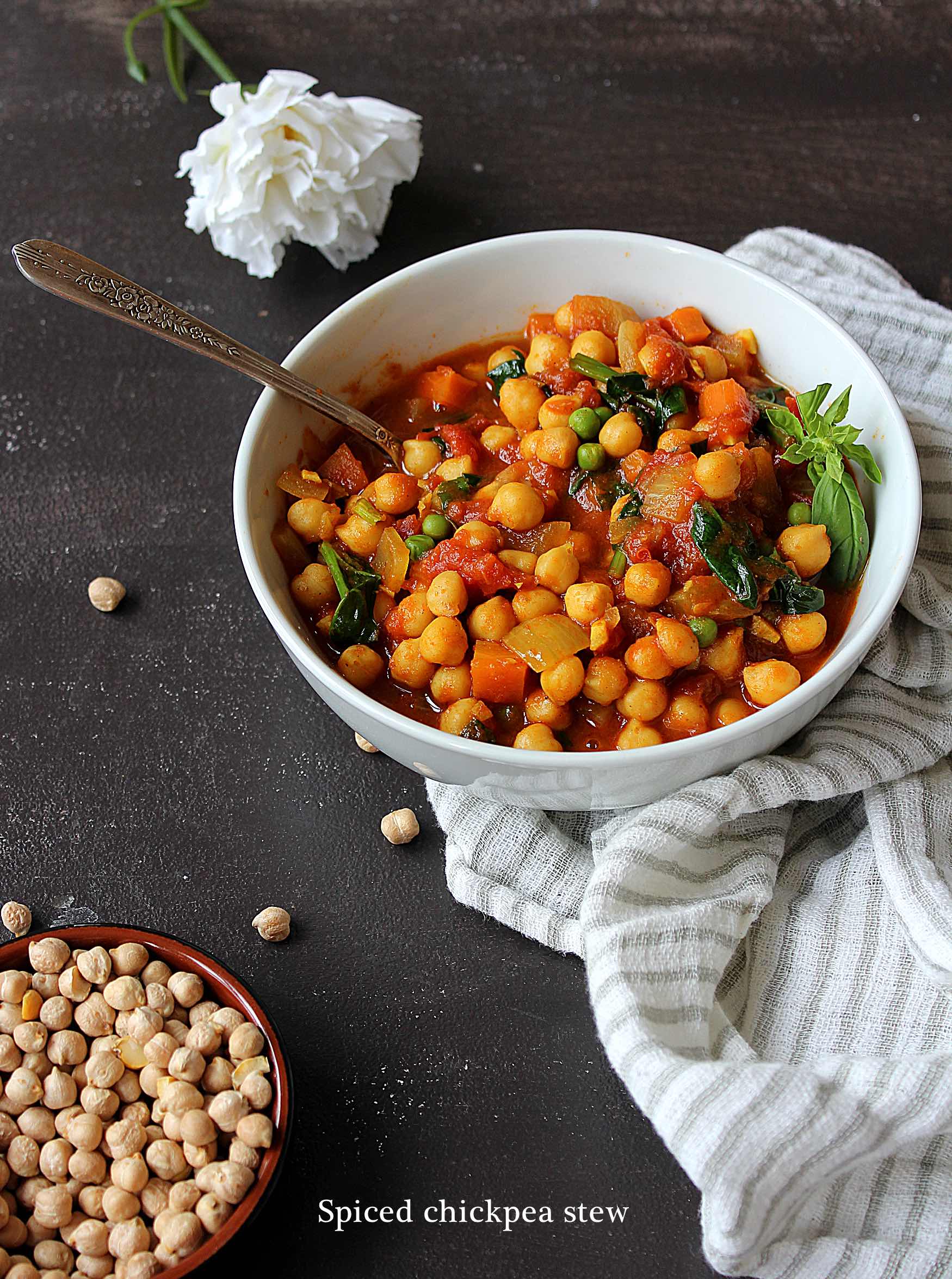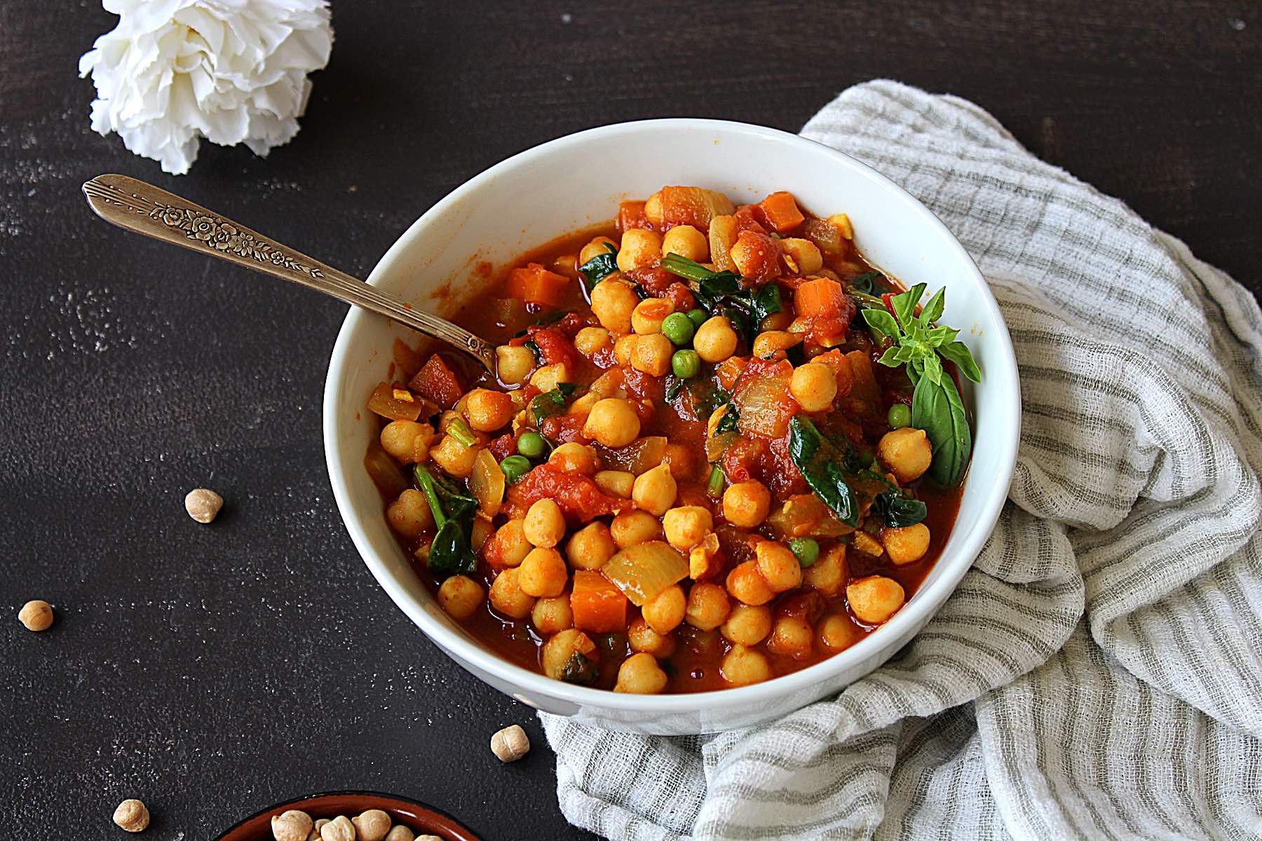 On attaque cette nouvelle semaine avec une recette végane les amis, eh oui. Il en faut pour tous les goûts et bien qu'on ne soit pas végans chez nous, on essaie de limiter notre consommation de viande! Alors aujourd'hui, je vous propose un mijoté de pois chiche aux légumes qui est délicieux servi ave du bon riz basmati.