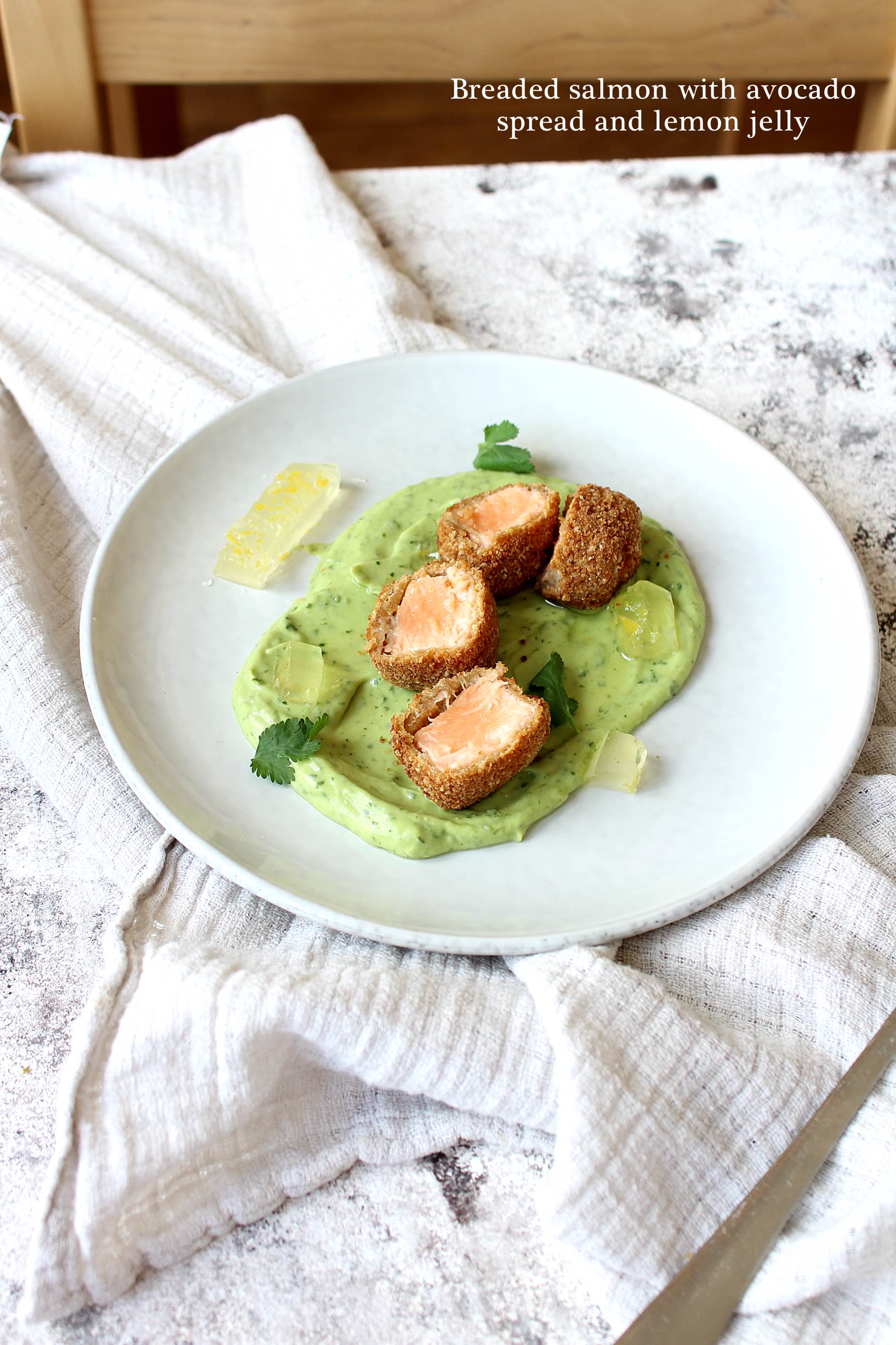 Saumon pané, crémeux d'avocat et gelée de citron (2-3 personnes) :